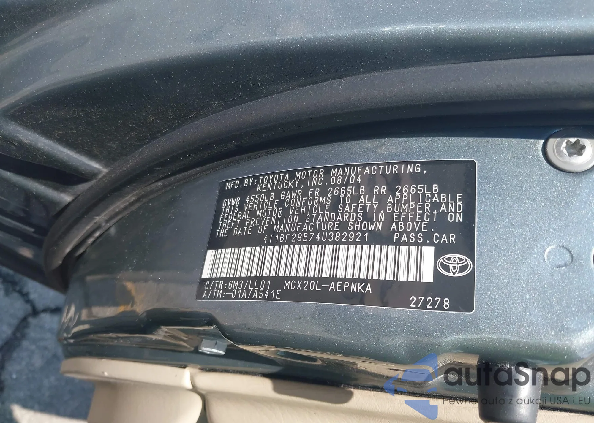 VIN: 4T1BF28B74U382921
