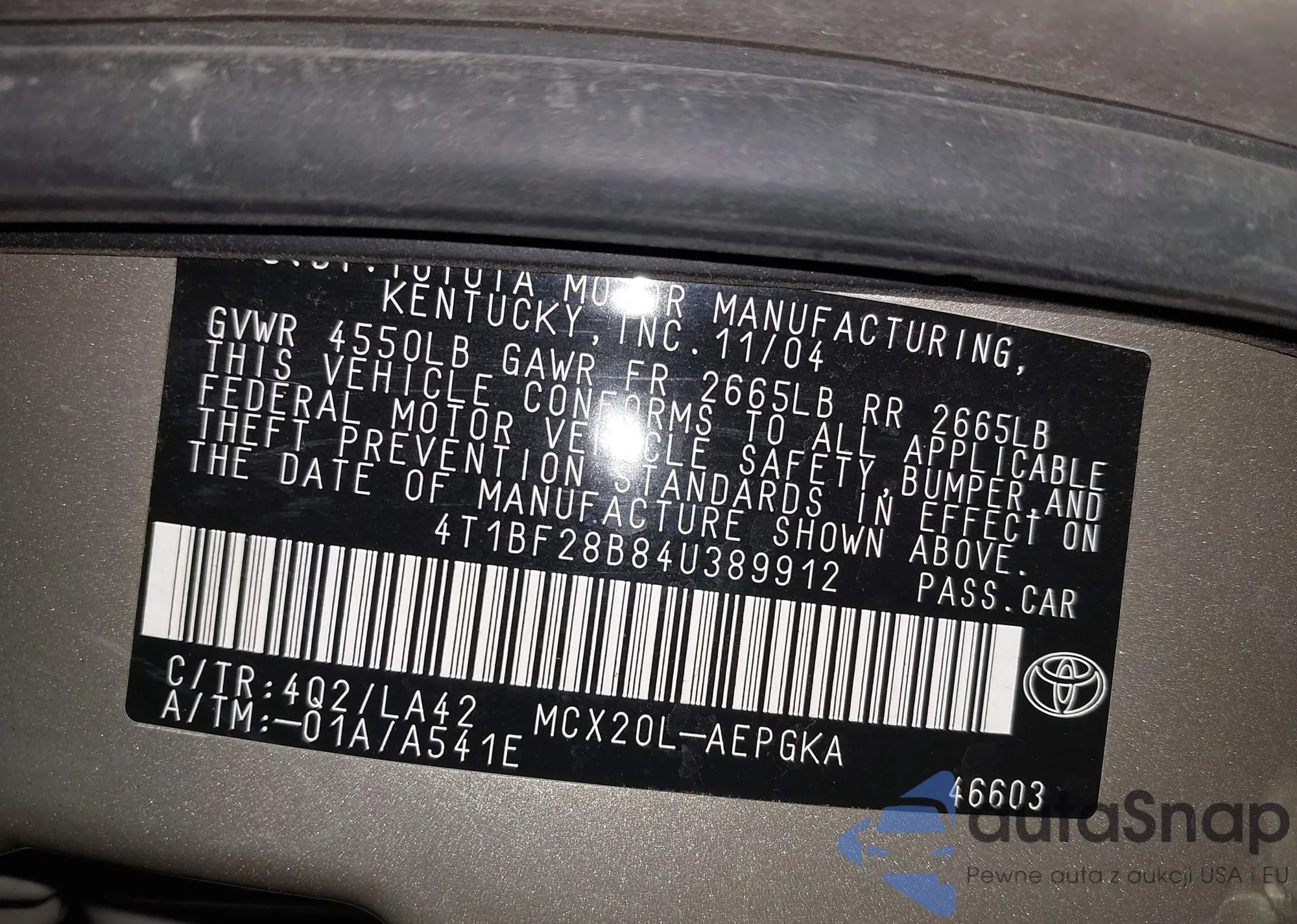 • VIN: 4T1BF28B84U389912