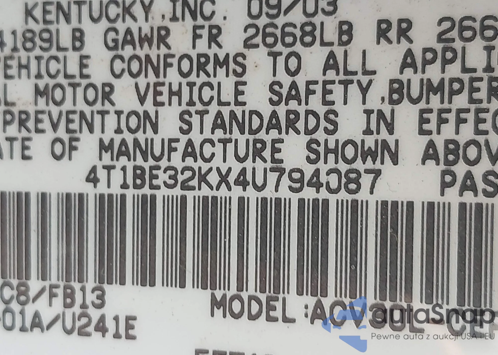 VIN: 4T1BE32KX4U794087