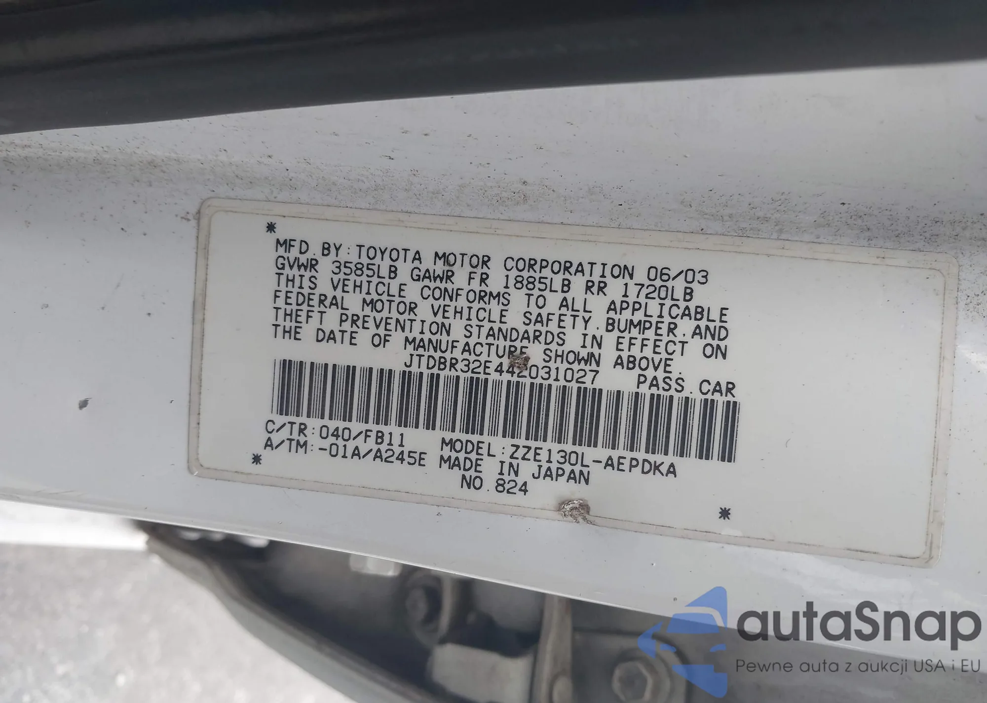 The car Toyota Corolla 2004 (VIN JTDBR32E442031027) is sold by an unverified seller. We recommend checking the Carfax report and confirming registration possibilities before purchase.
