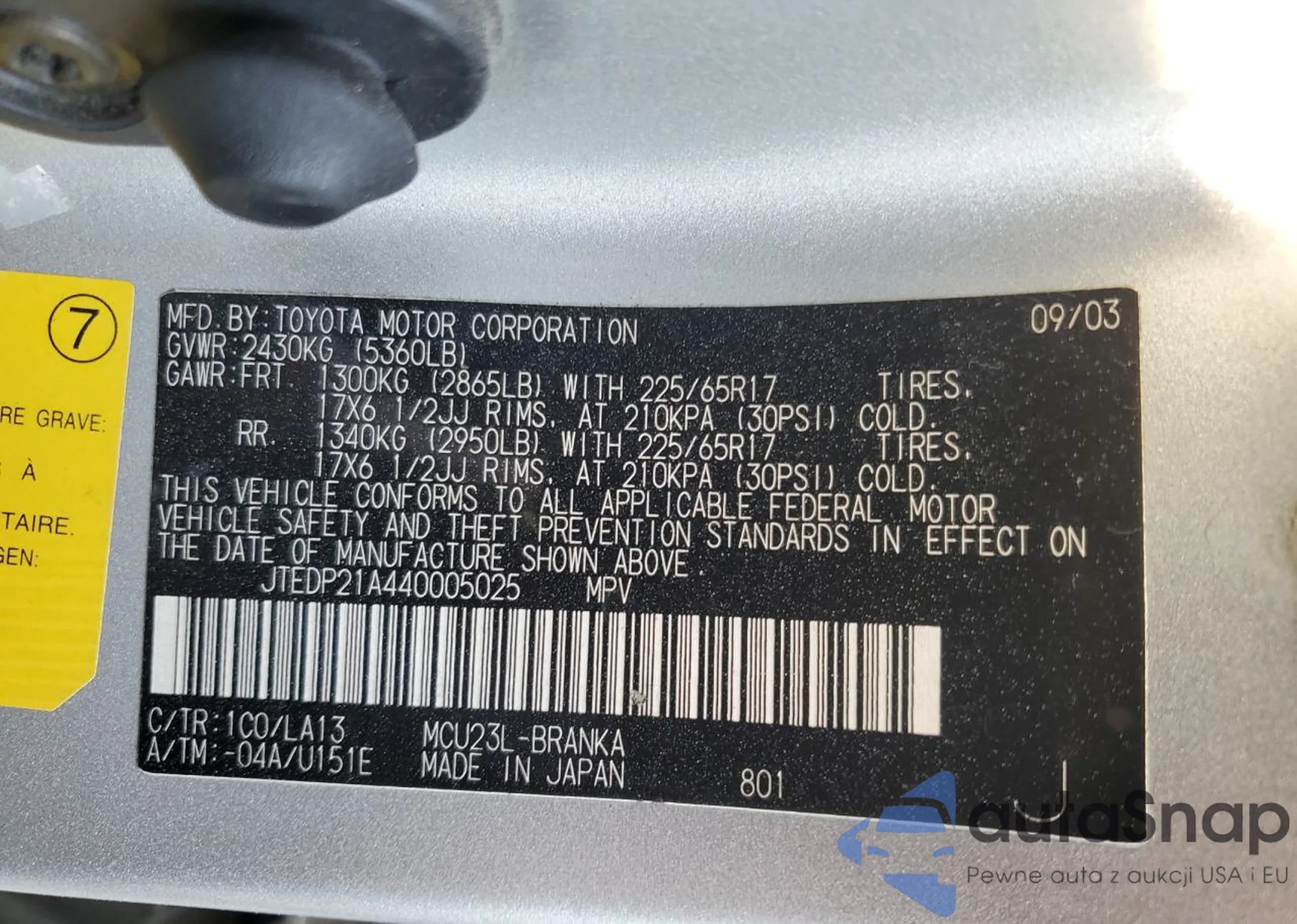 VIN: JTEDP21A440005025