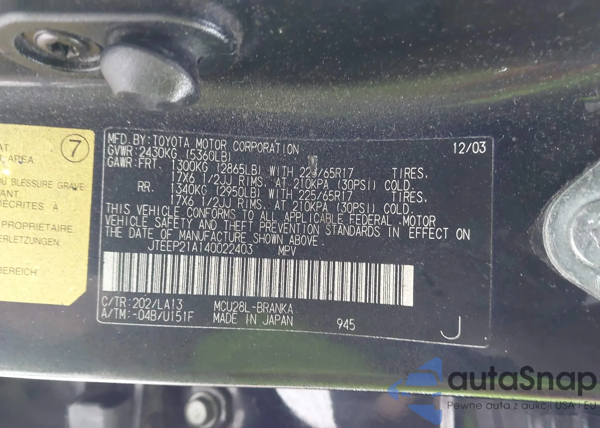 • VIN: JTEEP21A140022403