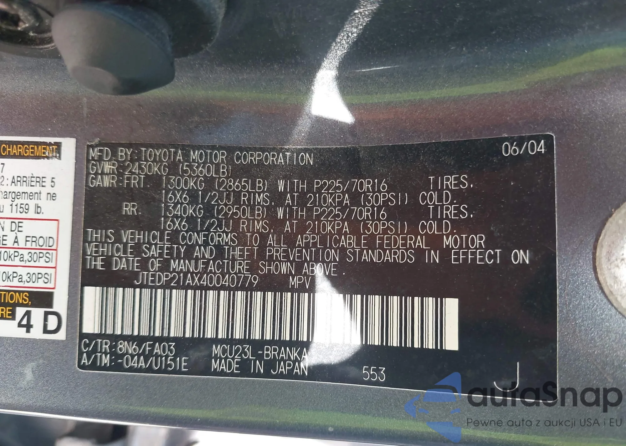 The car Toyota Highlander 2004 (VIN JTEDP21AX40040779) is sold by an unverified seller. We recommend checking the Carfax report and confirming registration possibilities before purchase.