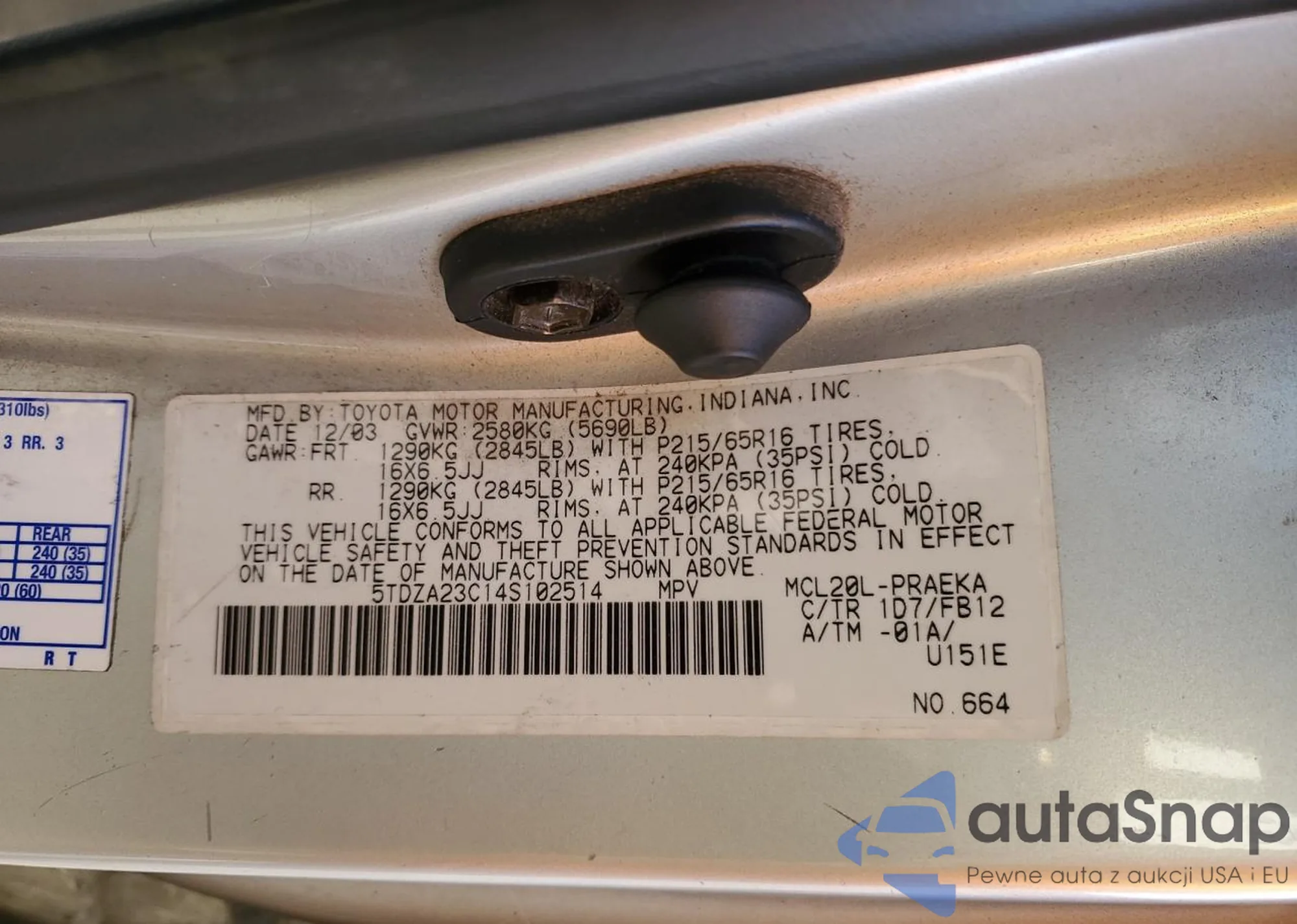 Toyota Sienna 2004 – Vehicle History (Sold at COPART)
