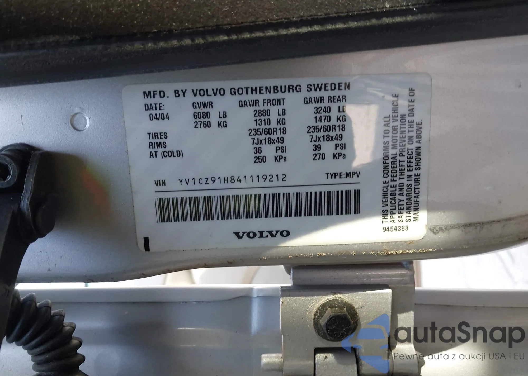 • VIN: YV1CZ91H841119212