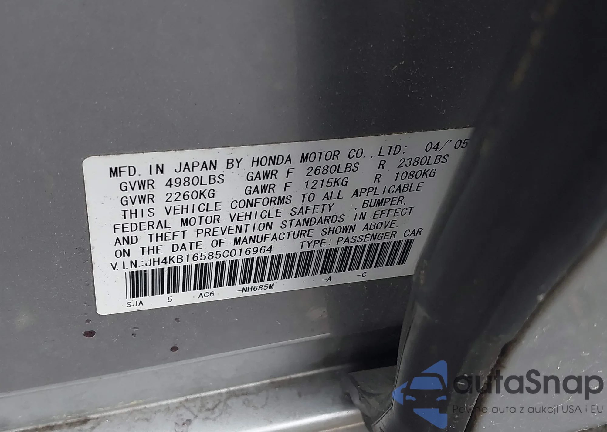 VIN: JH4KB16585C016964