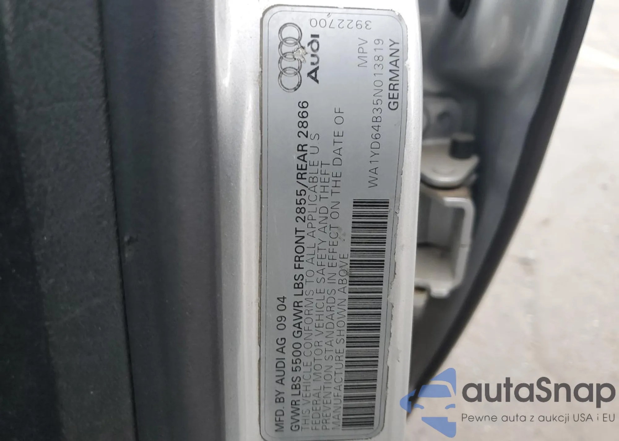 VIN: WA1YD64B35N013819