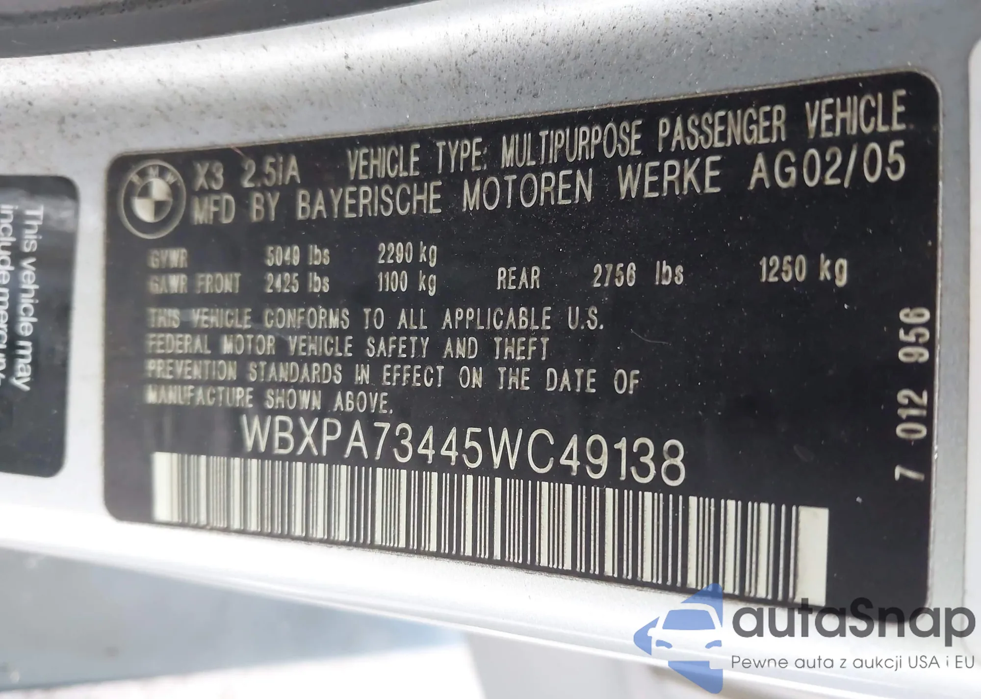 VIN: WBXPA73445WC49138