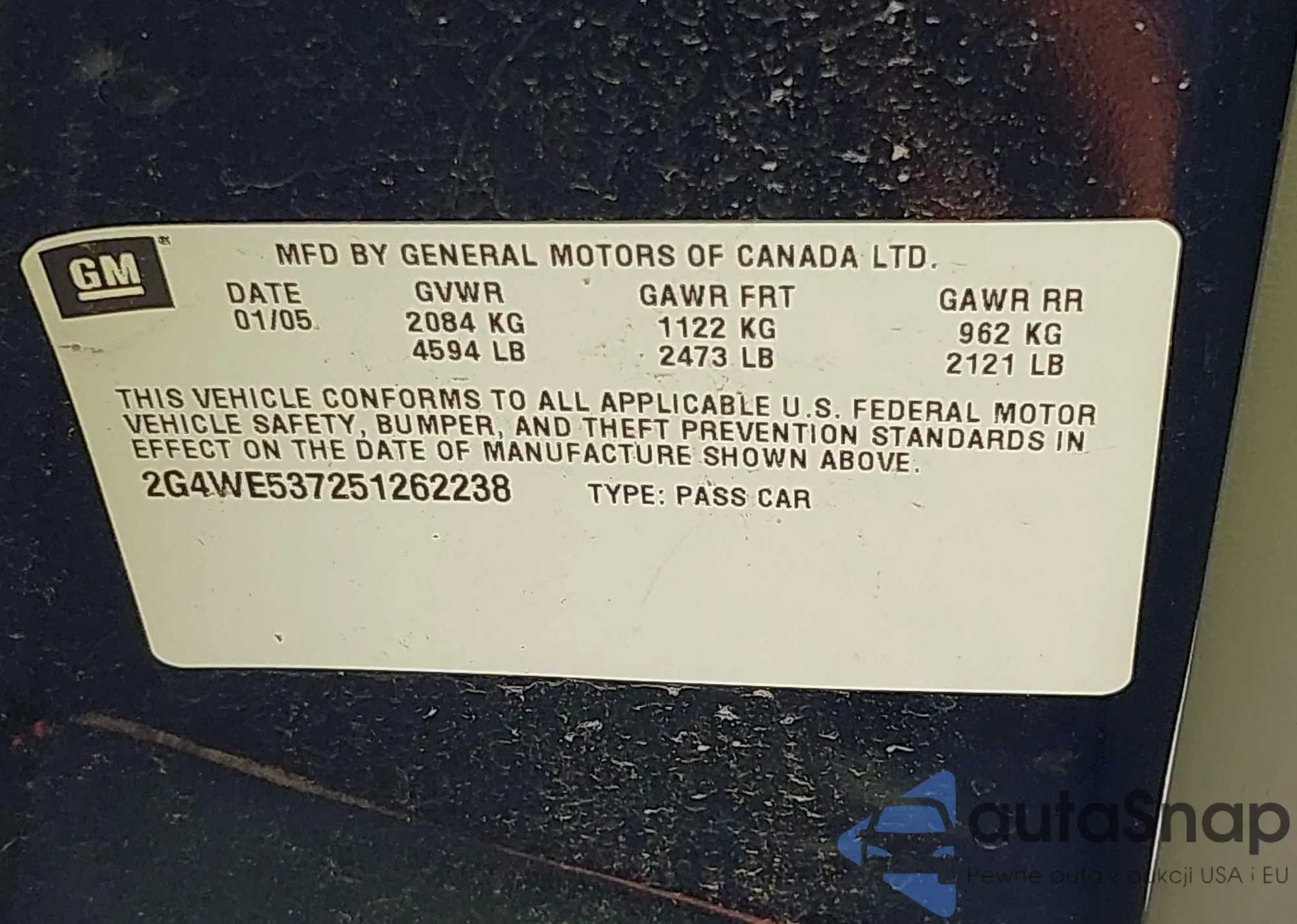 VIN: 2G4WE537251262238