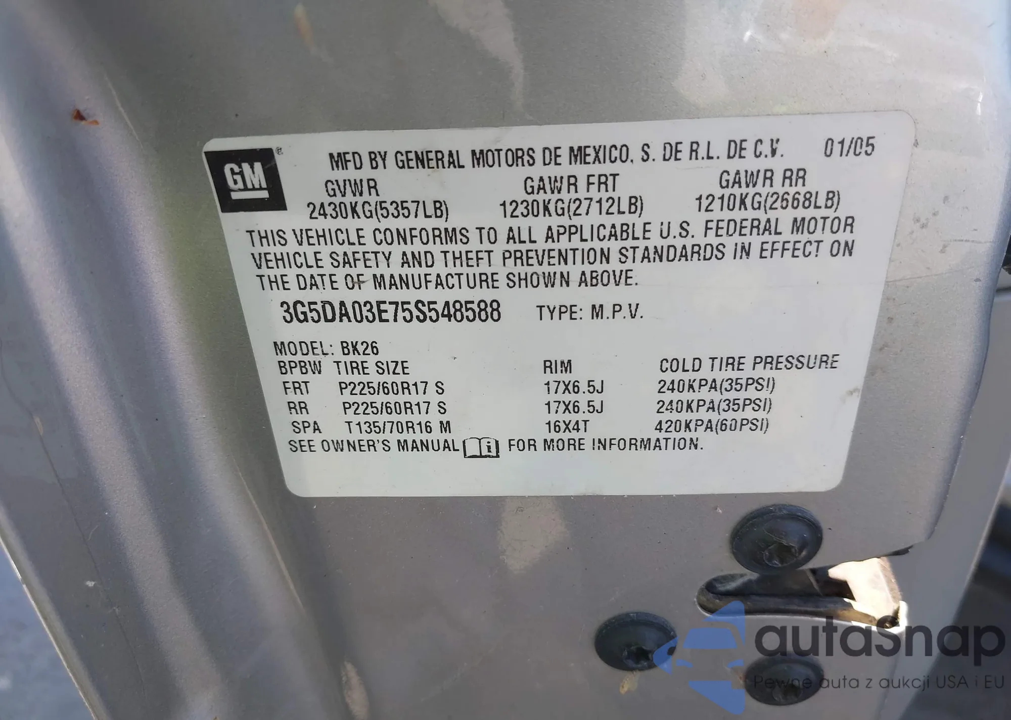 VIN: 3G5DA03E75S548588
