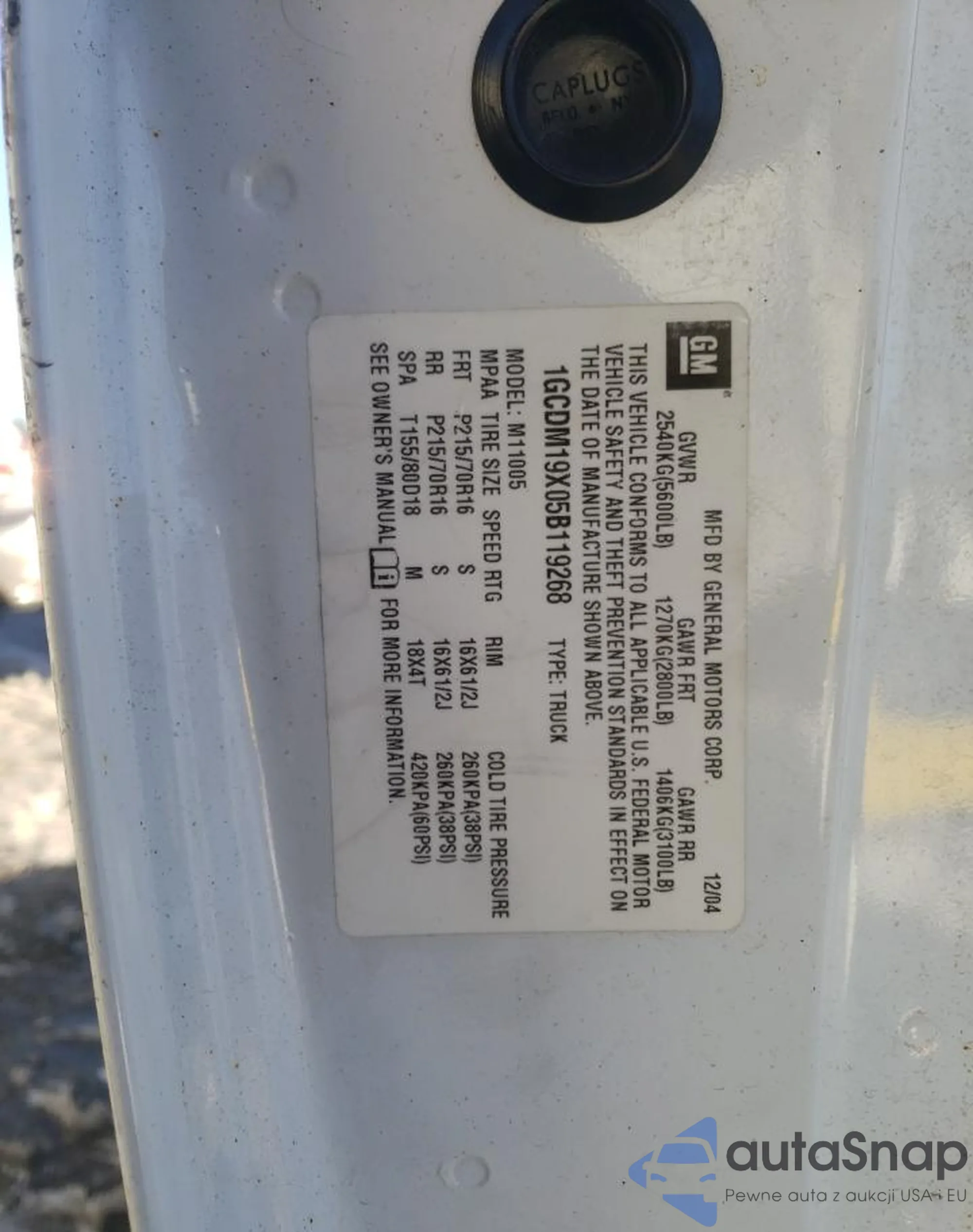 VIN: 1GCDM19X05B119268