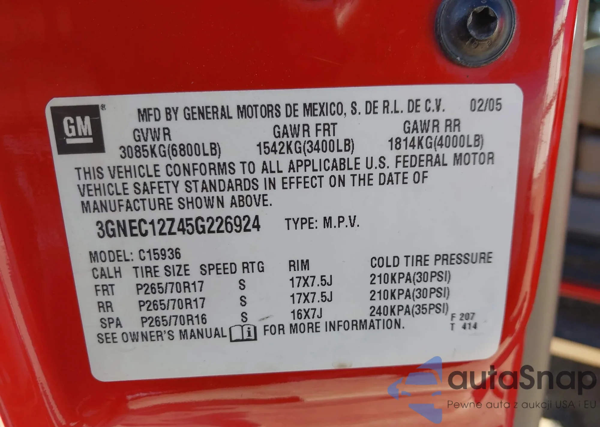 • VIN: 3GNEC12Z45G226924
