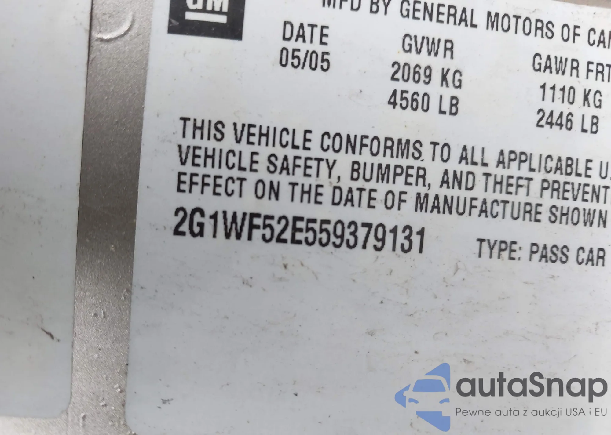 VIN: 2G1WF52E559379131