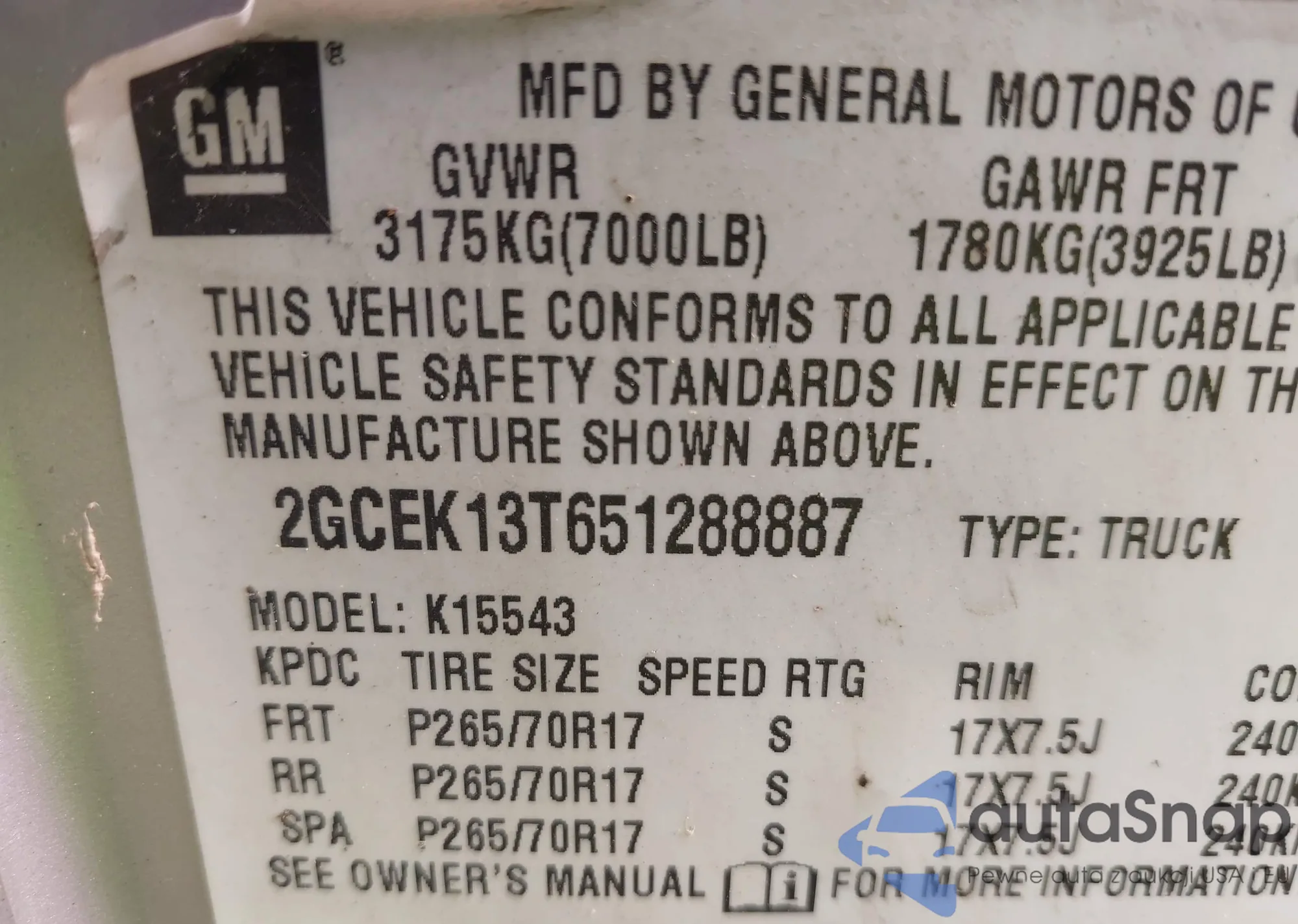 The car Chevrolet Silverado 2005 (VIN 2GCEK13T651288887) is sold by an unverified seller. We recommend checking the Carfax report and confirming registration possibilities before purchase.