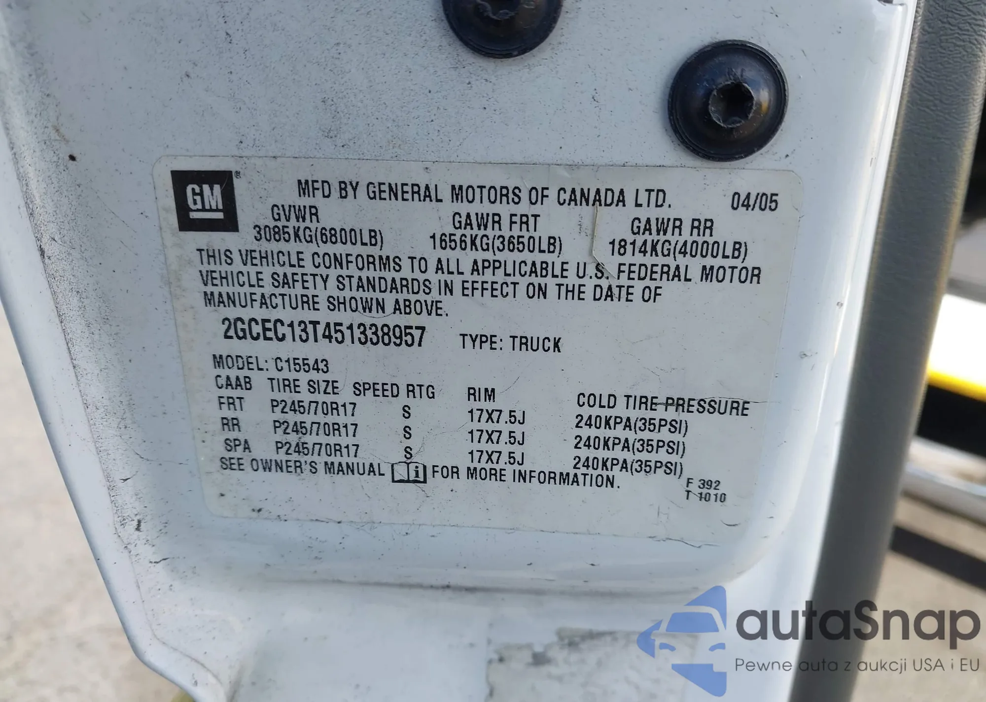 VIN: 2GCEC13T451338957