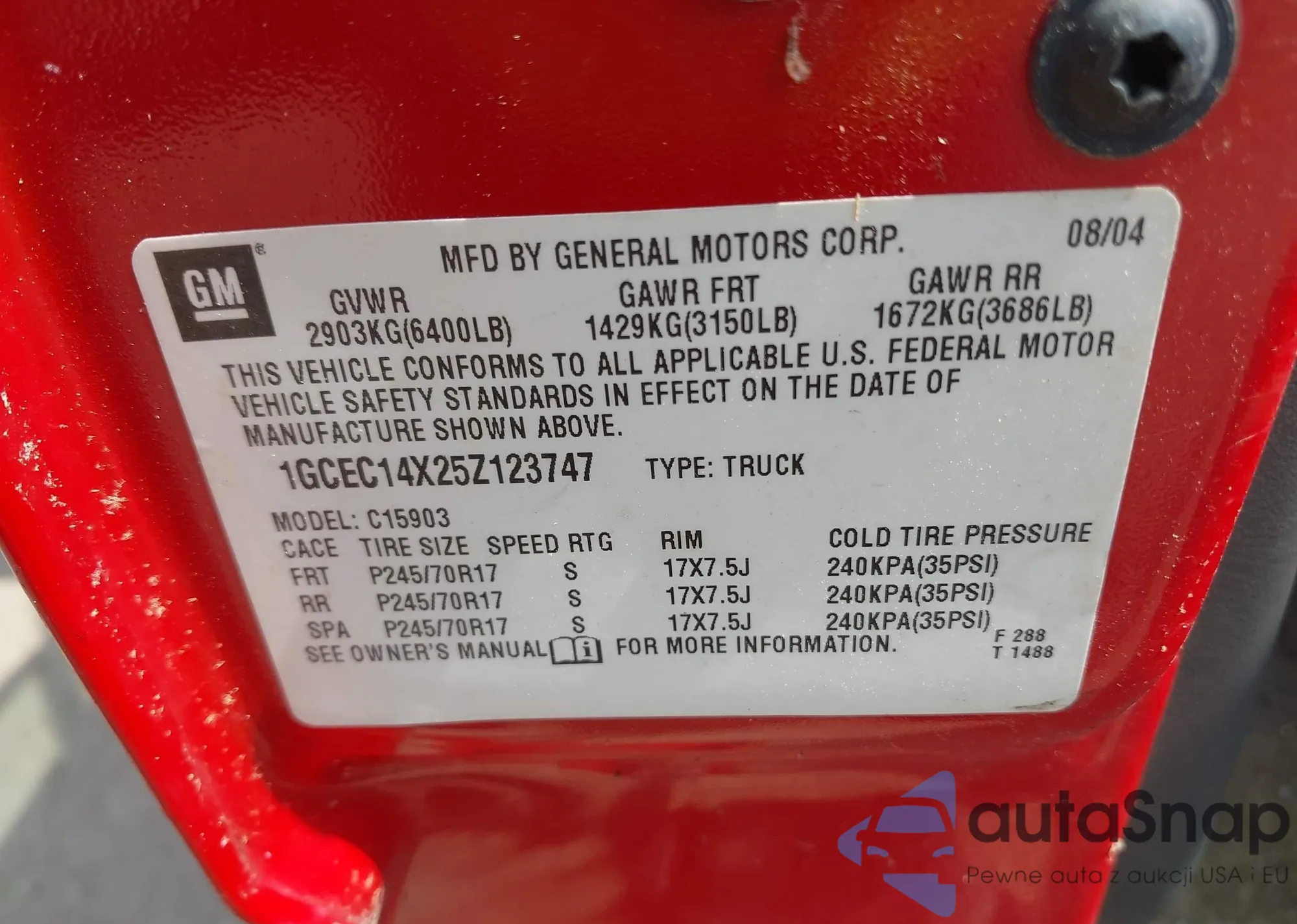 VIN: 1GCEC14X25Z123747