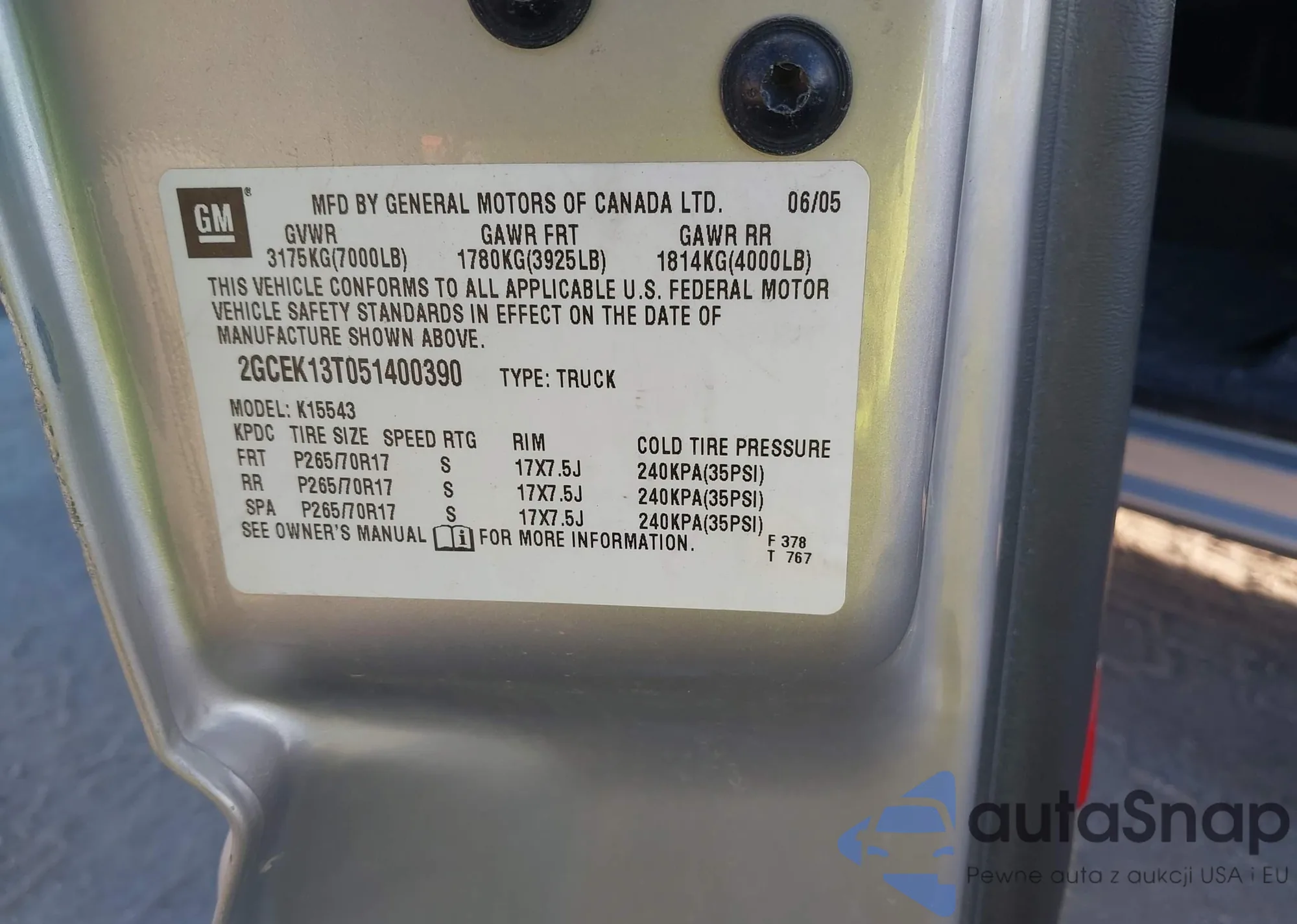 VIN: 2GCEK13T051400390