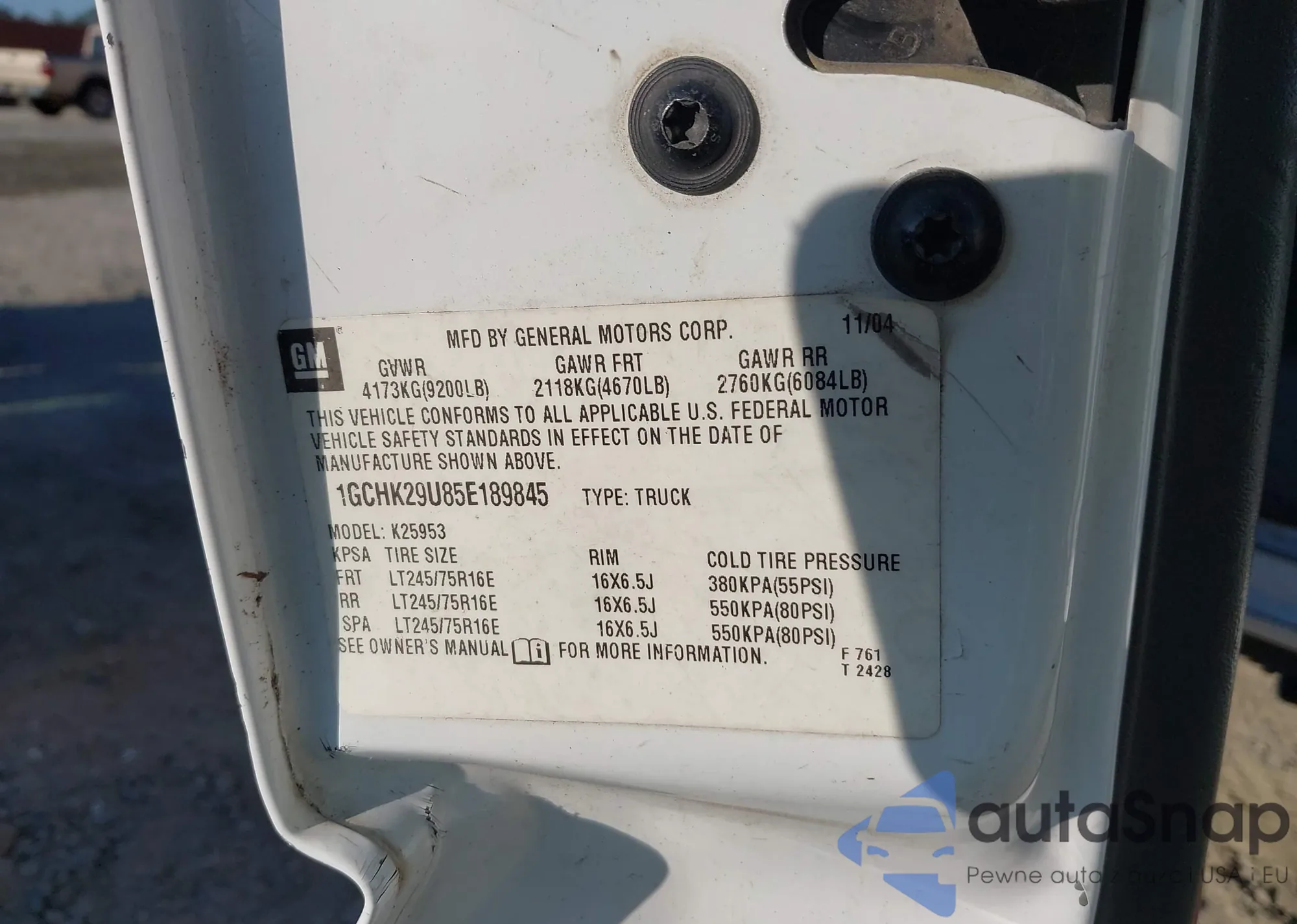 • VIN: 1GCHK29U85E189845