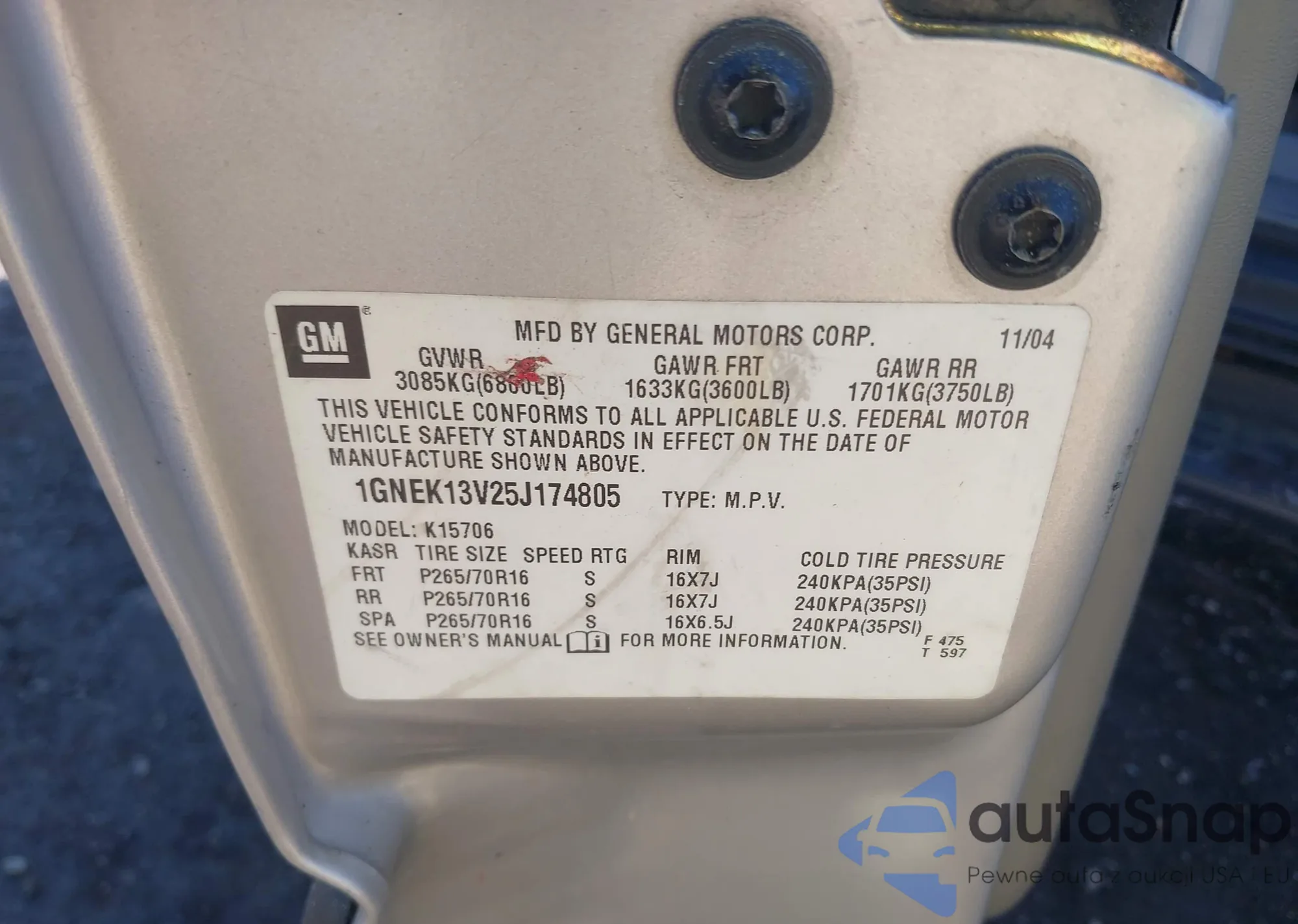 VIN: 1GNEK13V25J174805