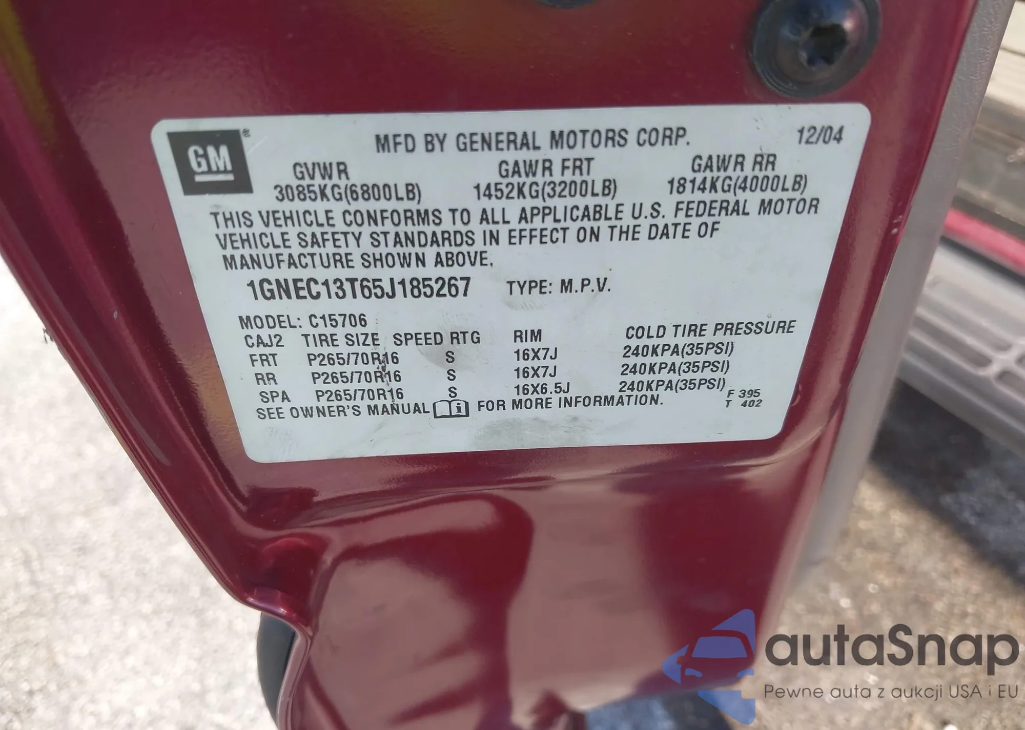 VIN: 1GNEC13T65J185267