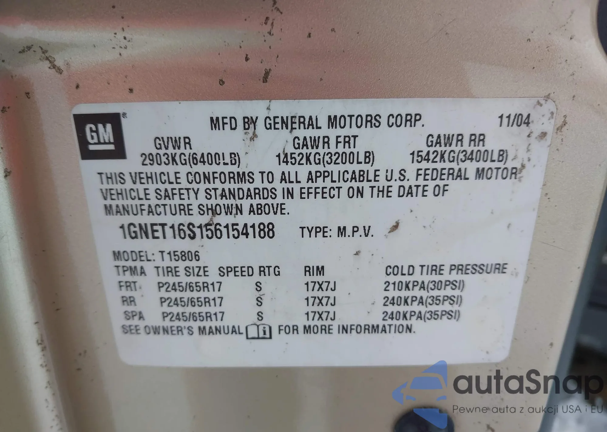 The car Chevrolet TrailBlazer 2005 (VIN 1GNET16S156154188) has not been auctioned before. The documents are clean, and the mileage matches or is below the market average. Sold by an insurance company – we recommend purchase. Delivery to the port will take approx. 6–8 weeks.