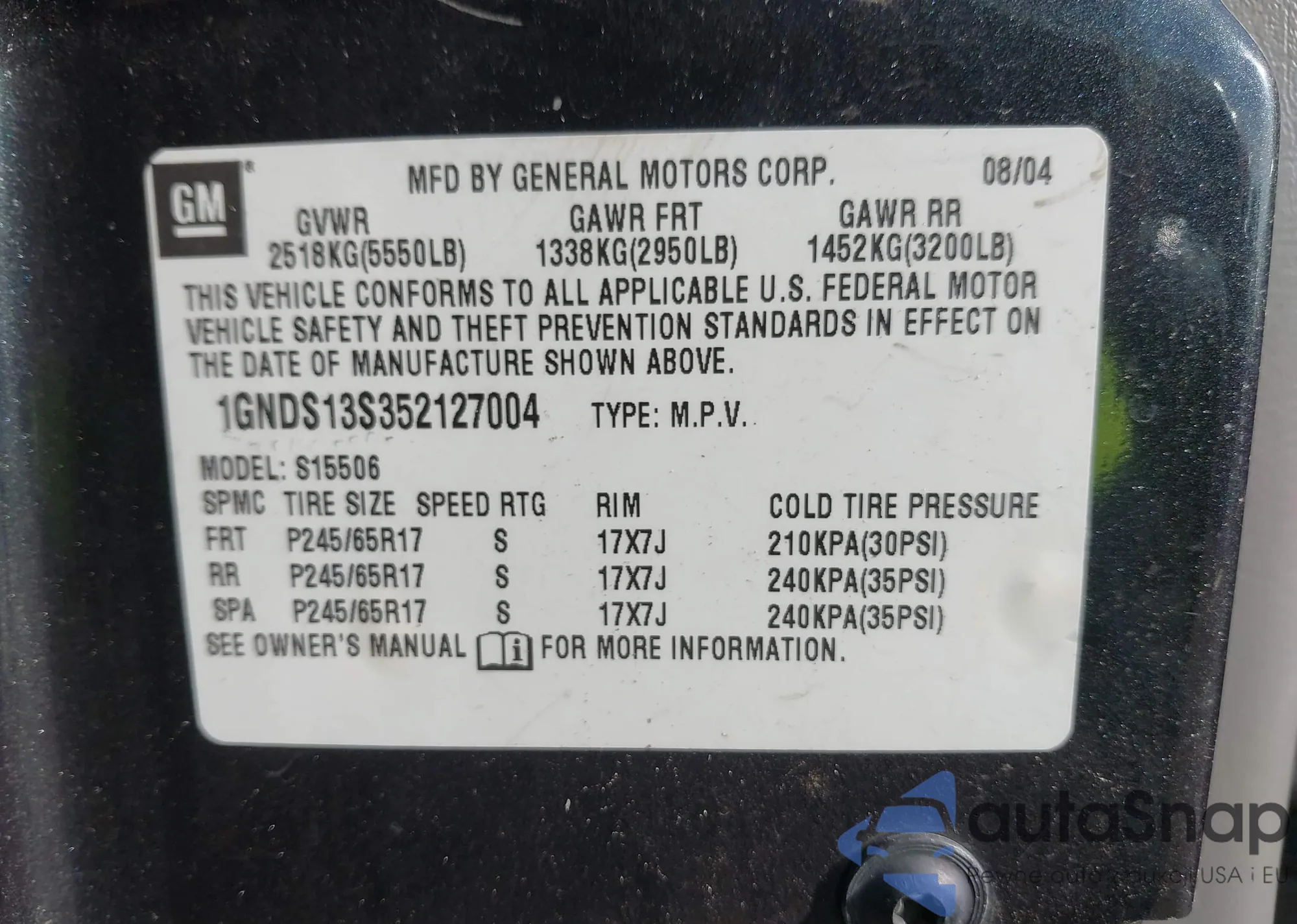 VIN: 1GNDS13S352127004