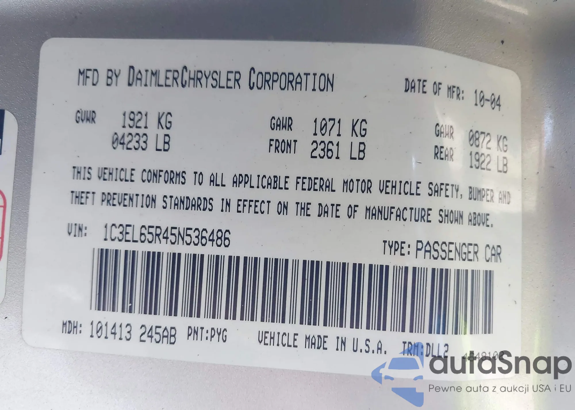 VIN: 1C3EL65R45N536486