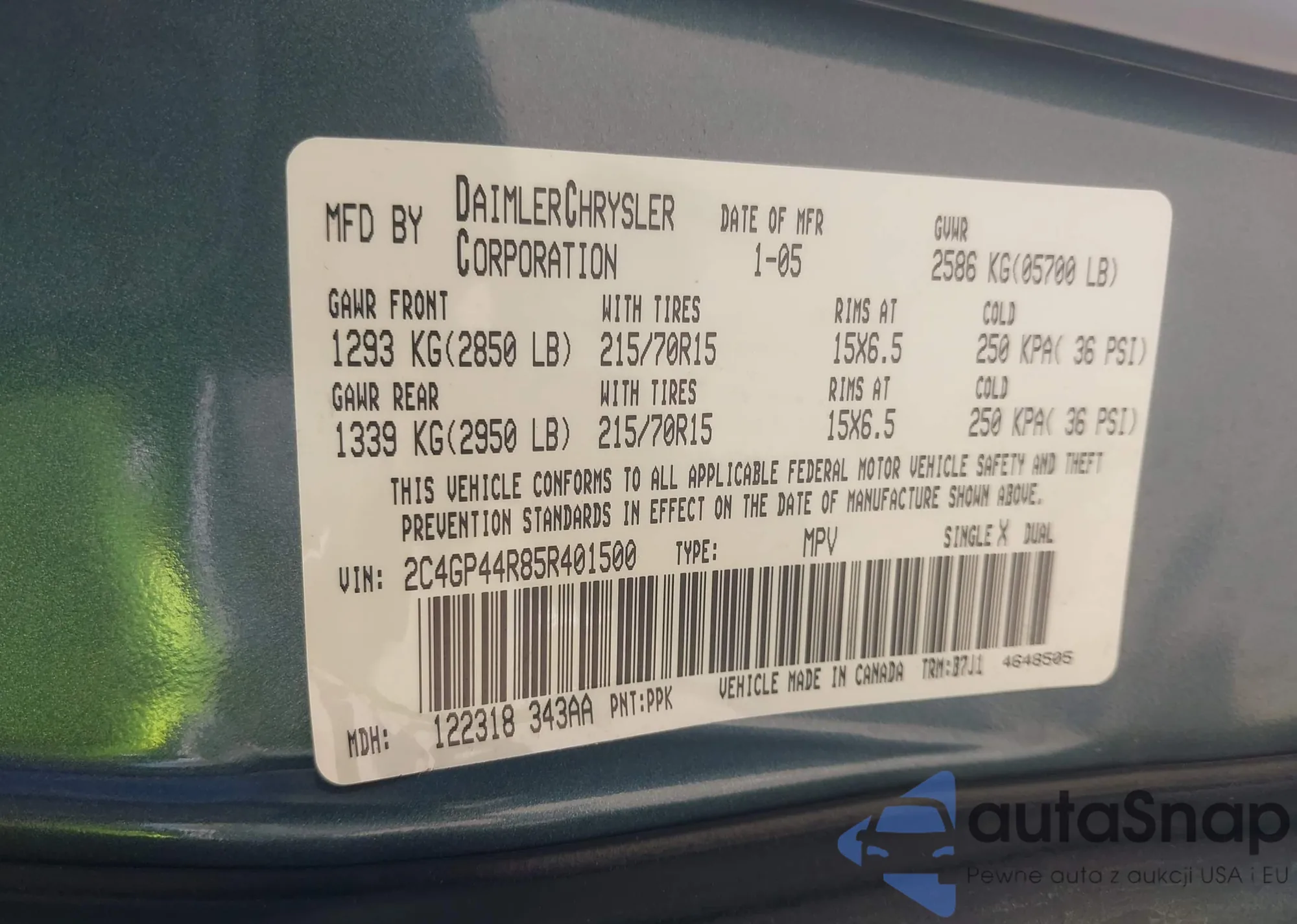 The car Chrysler Town & Country 2005 (VIN 2C4GP44R85R401500) is sold by an unverified seller. We recommend checking the Carfax report and confirming registration possibilities before purchase.