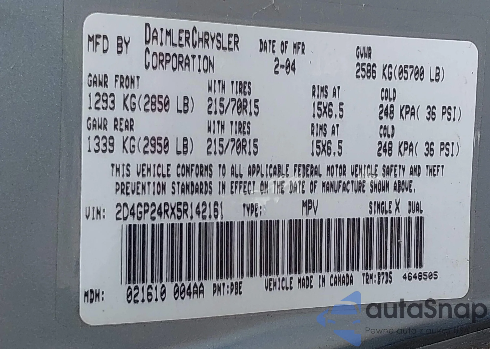 VIN: 2D4GP24RX5R142161