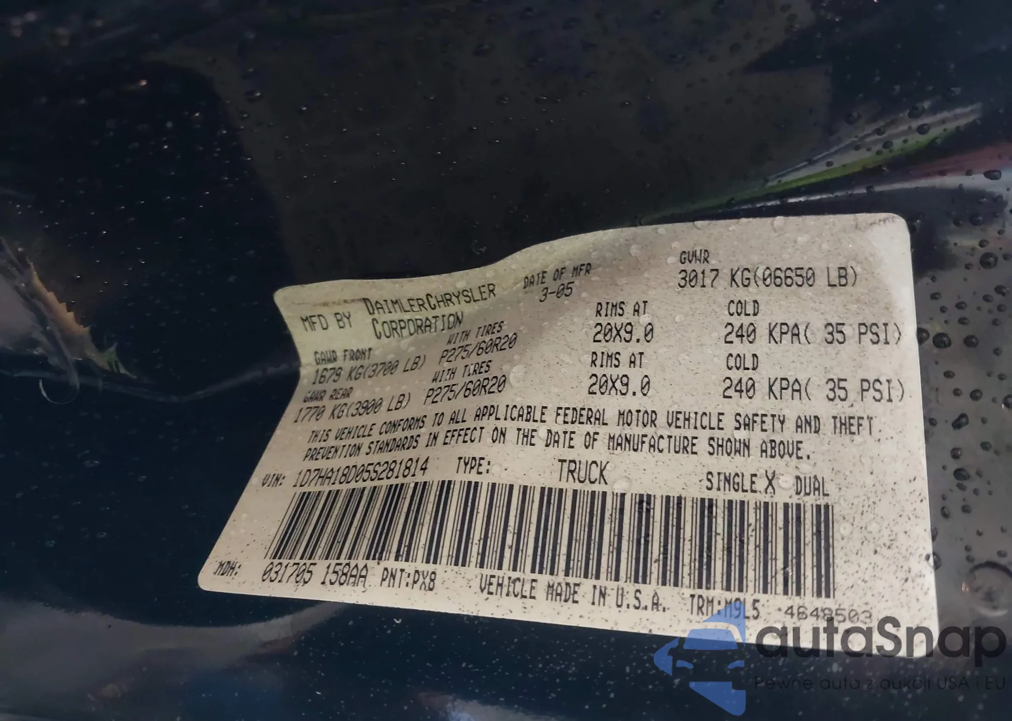 VIN: 1D7HA18D05S281814