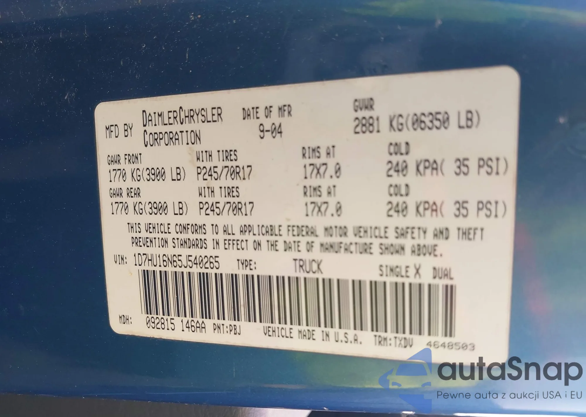 VIN: 1D7HU16N65J540265