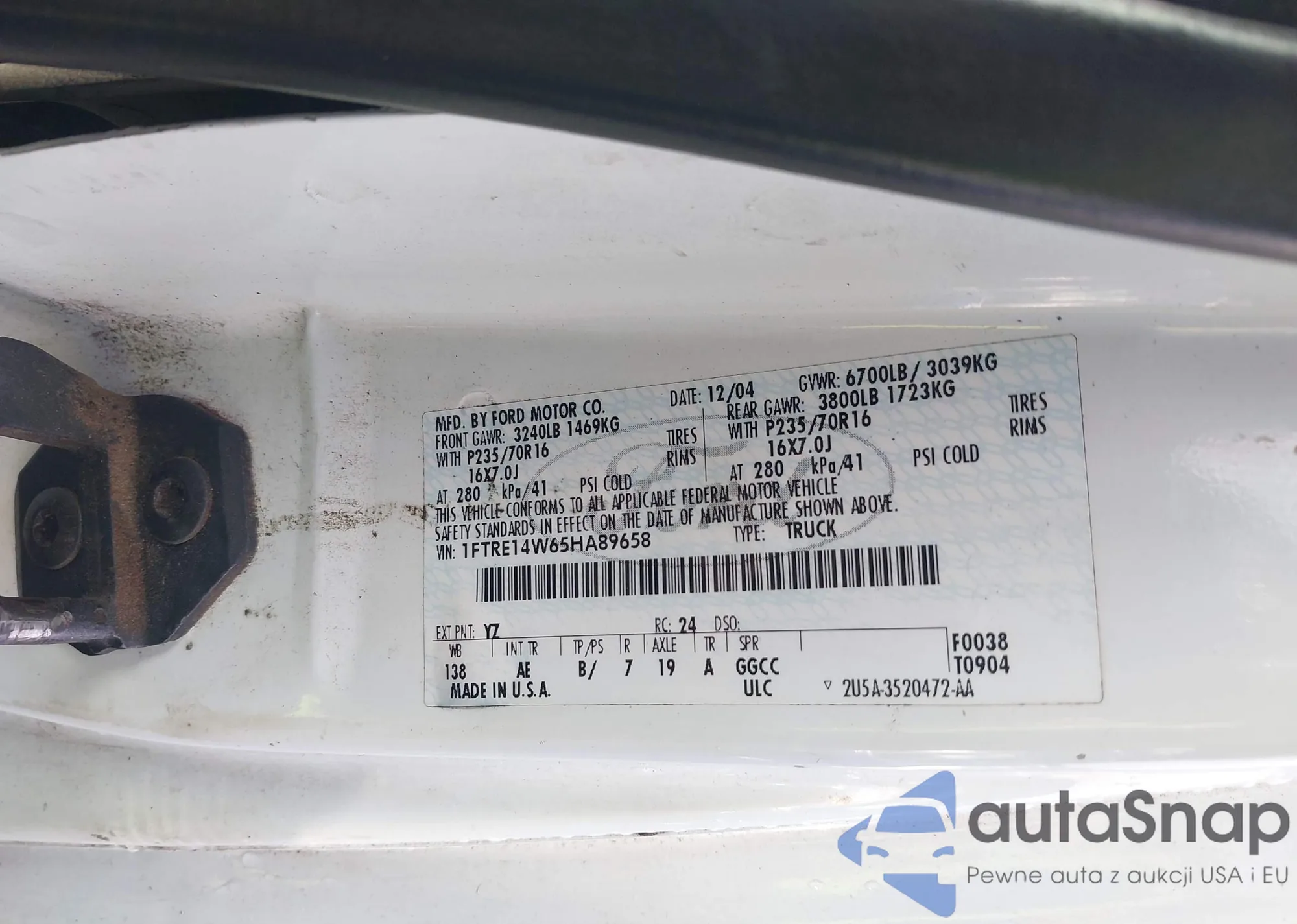 VIN: 1FTRE14W65HA89658