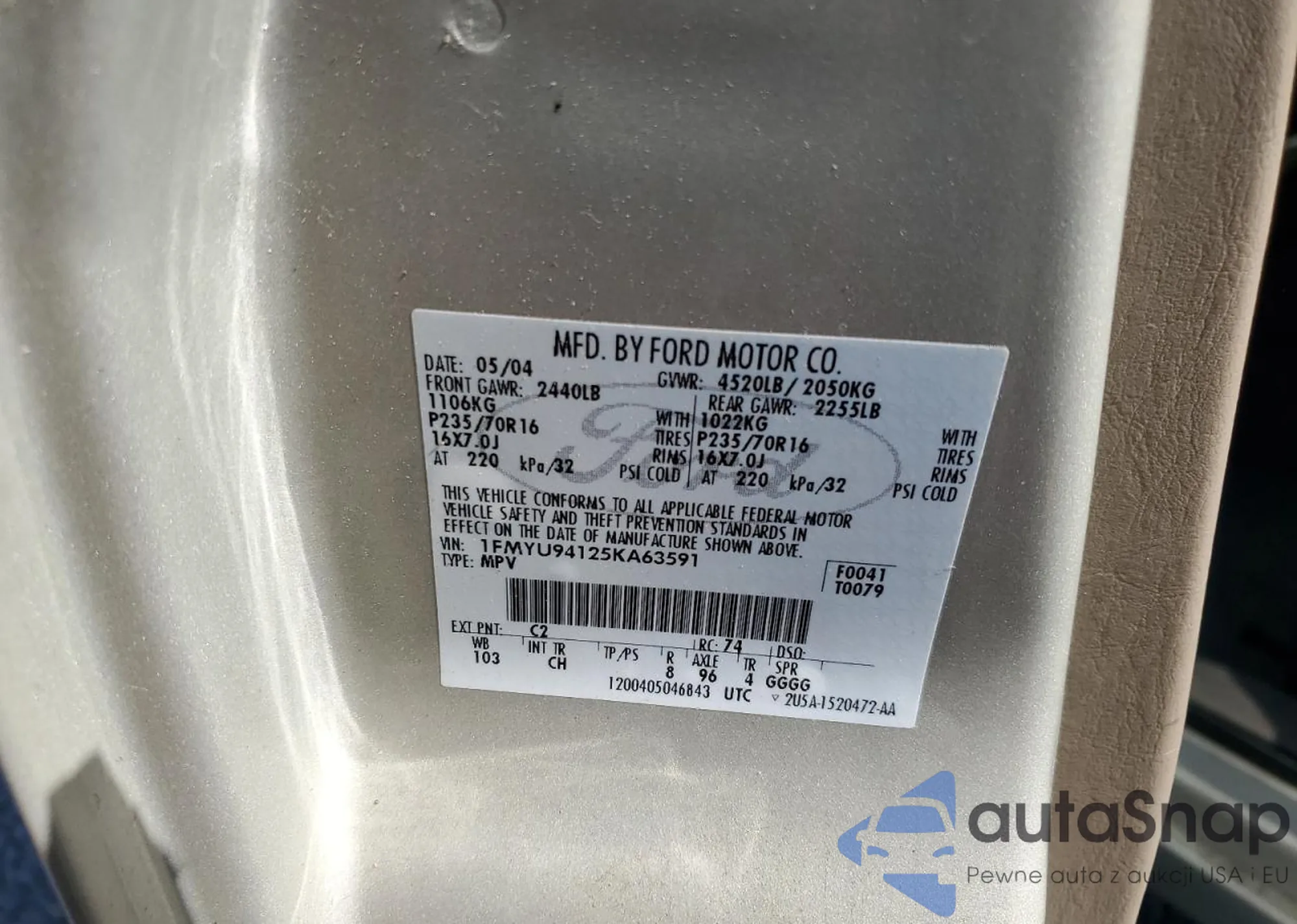 VIN: 1FMYU94125KA63591
