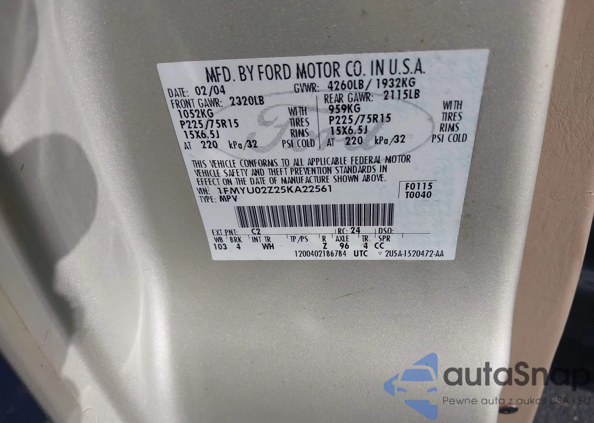 VIN: 1FMYU02Z25KA22561