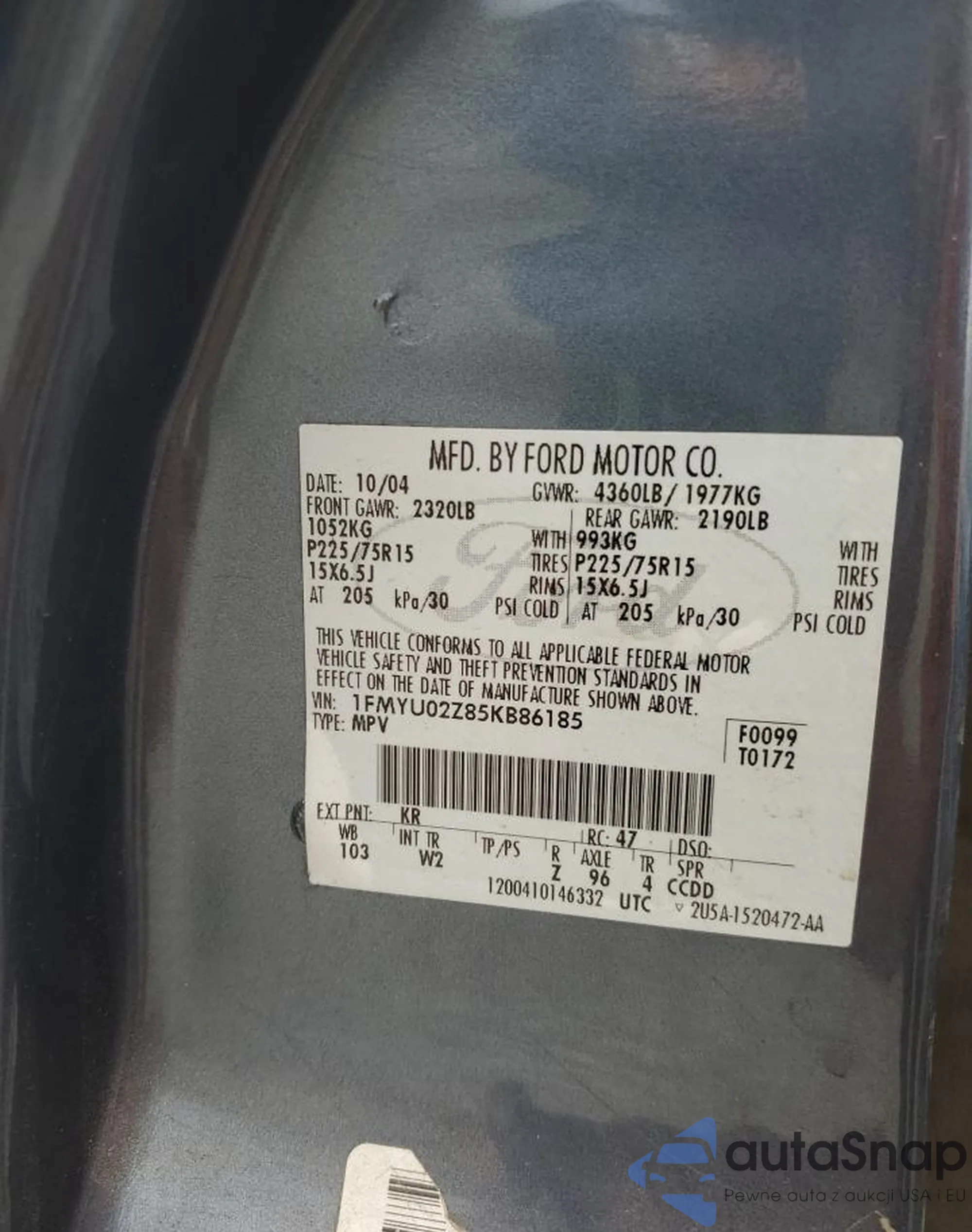 VIN: 1FMYU02Z85KB86185