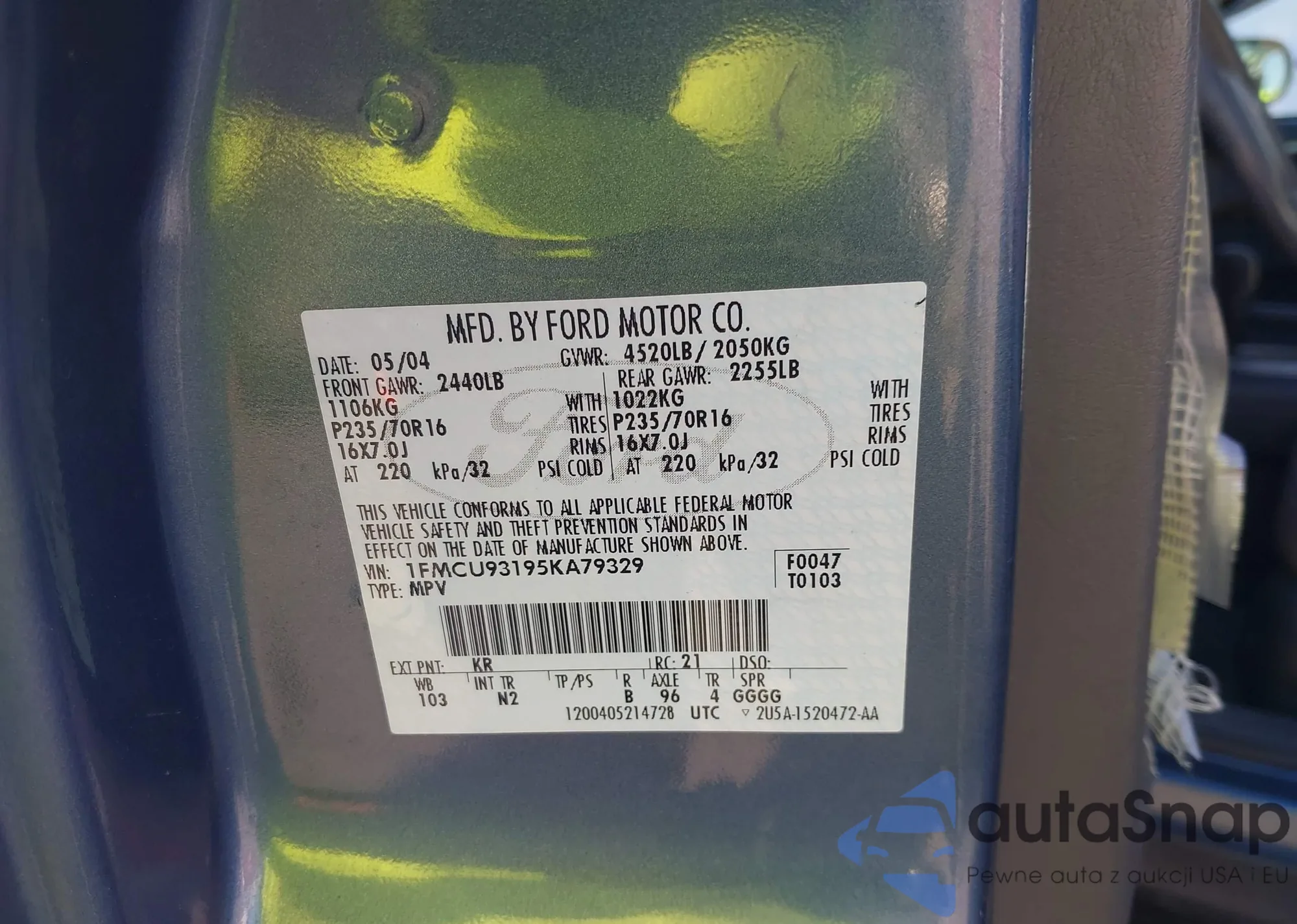 VIN: 1FMCU93195KA79329