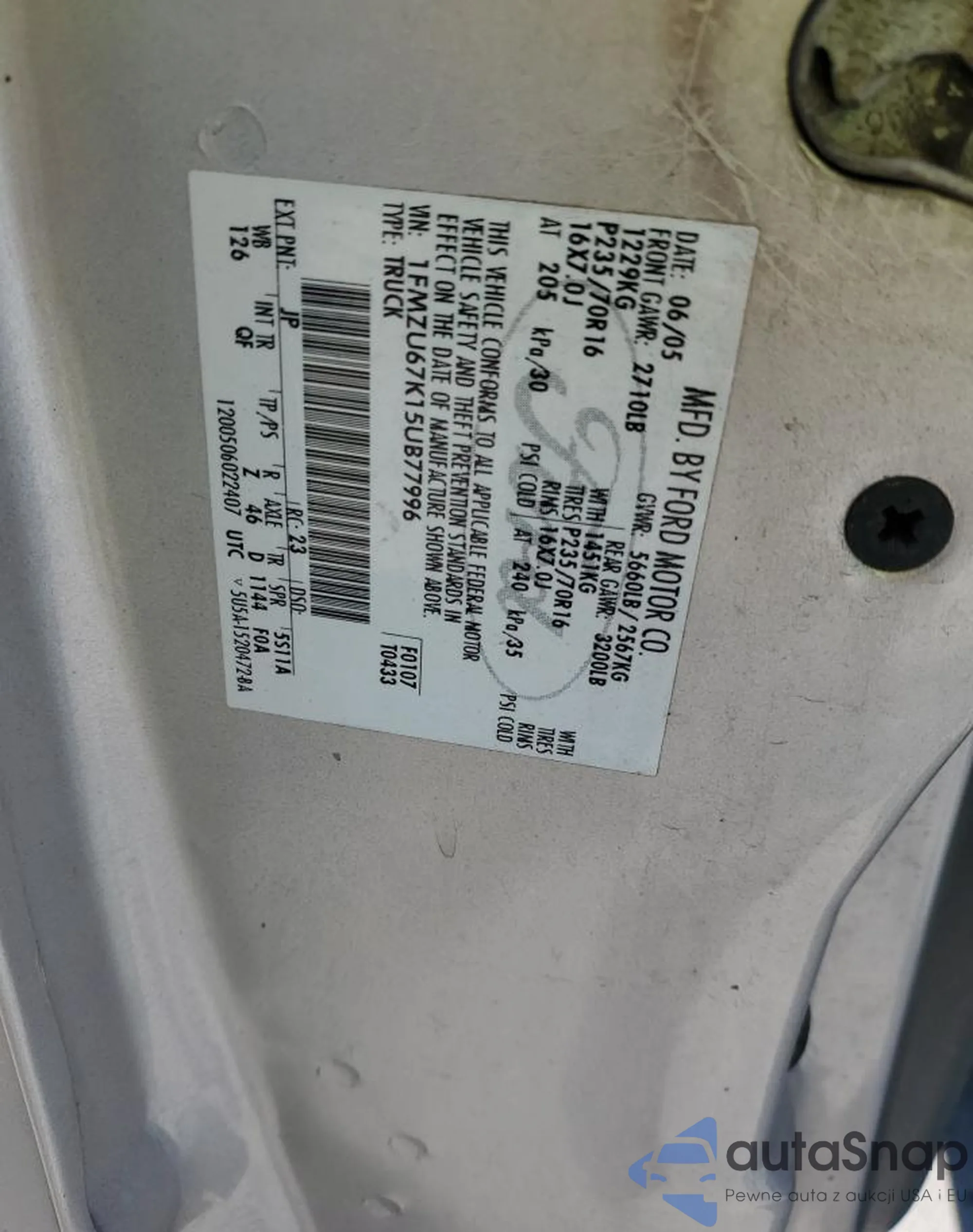 VIN: 1FMZU67K15UB77996