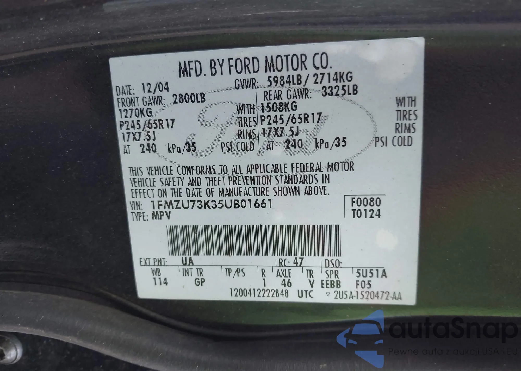 VIN: 1FMZU73K35UB01661