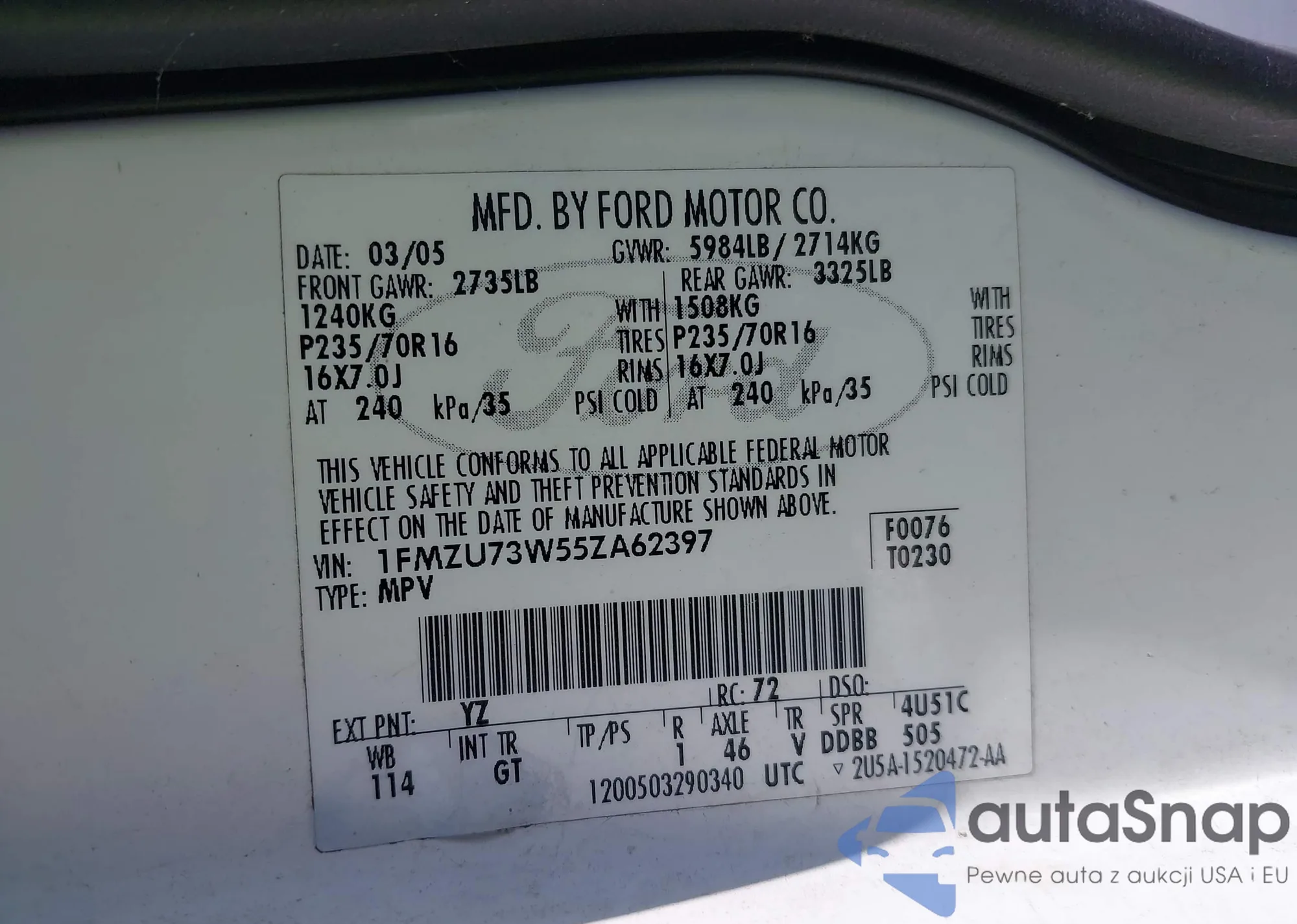 VIN: 1FMZU73W55ZA62397