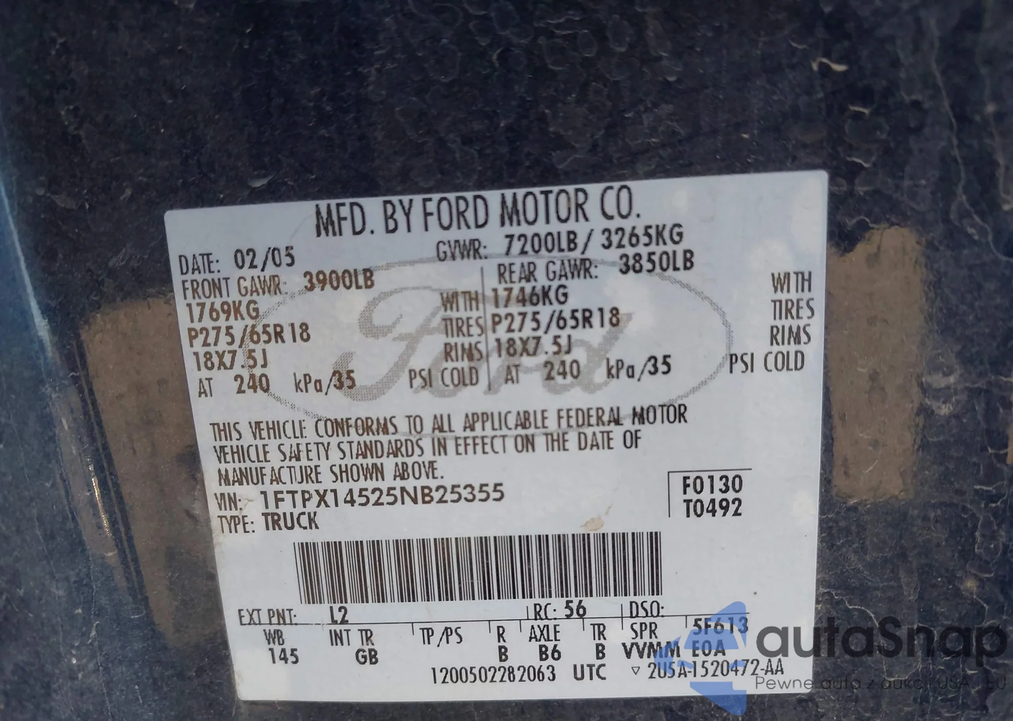 VIN: 1FTPX14525NB25355