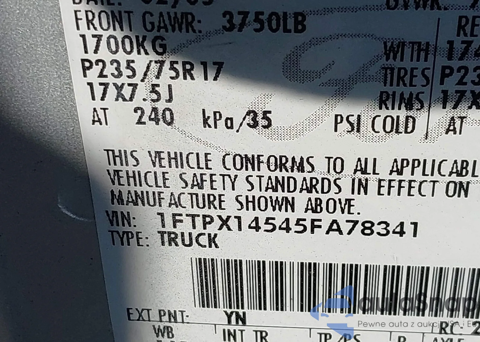 • VIN: 1FTPX14545FA78341