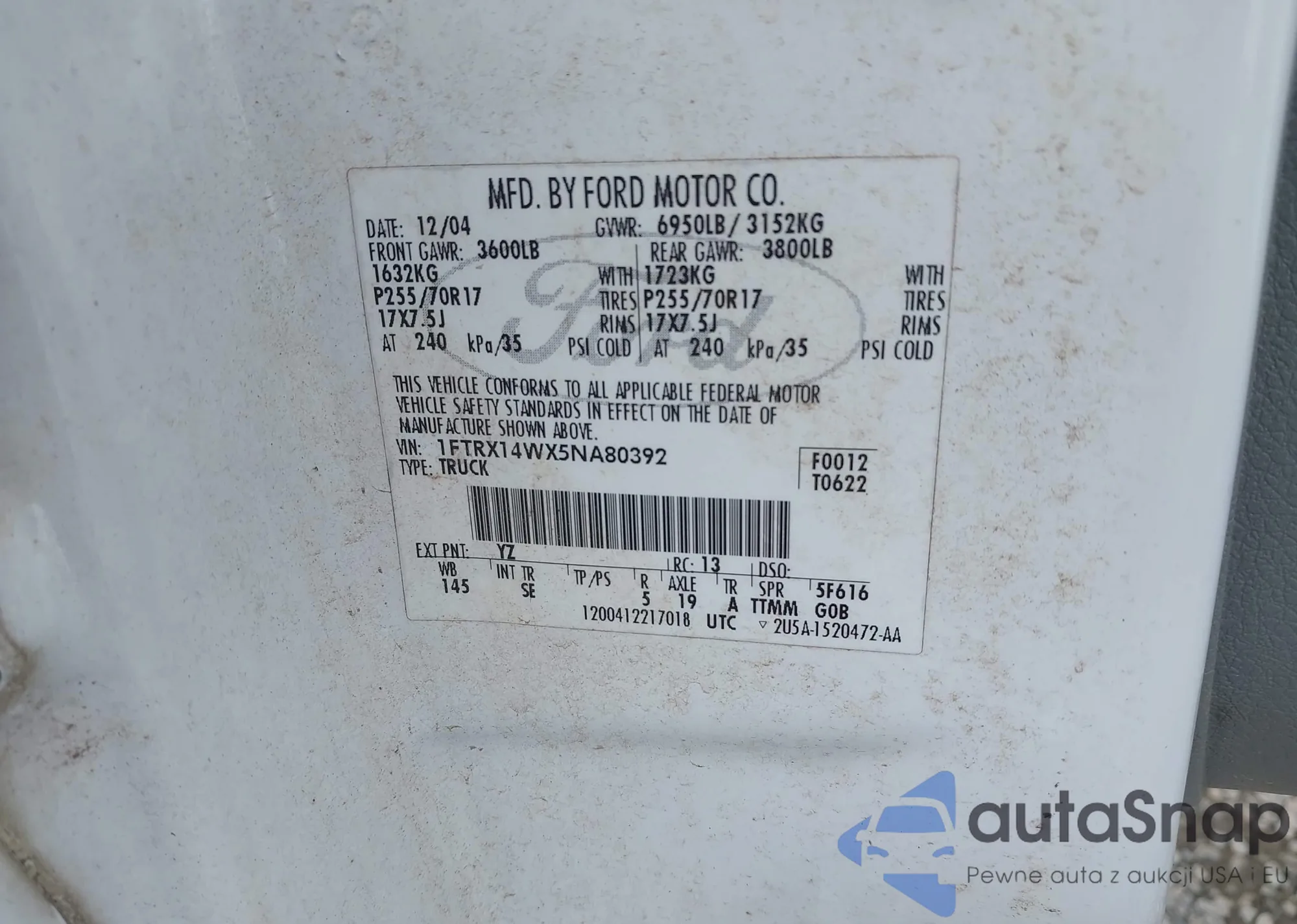 VIN: 1FTRX14WX5NA80392
