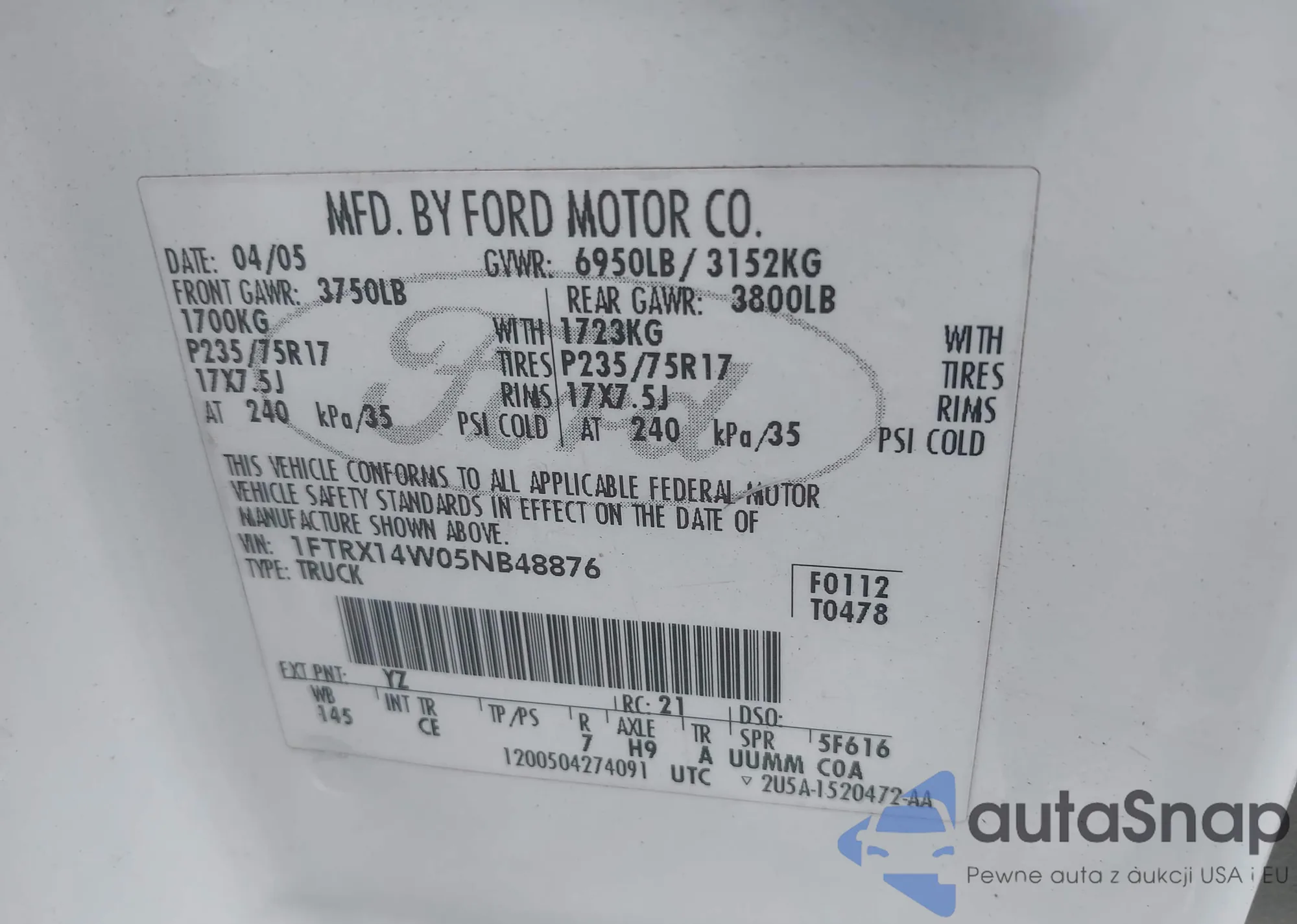 VIN: 1FTRX14W05NB48876