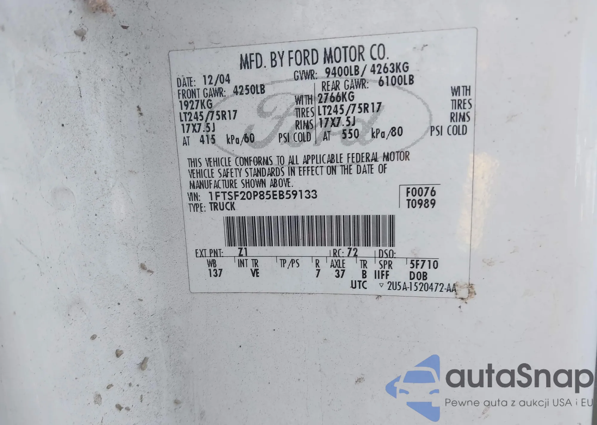 VIN: 1FTSF20P85EB59133