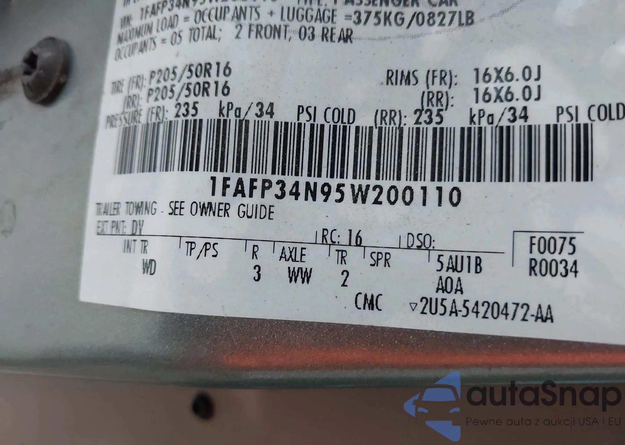 VIN: 1FAFP34N95W200110