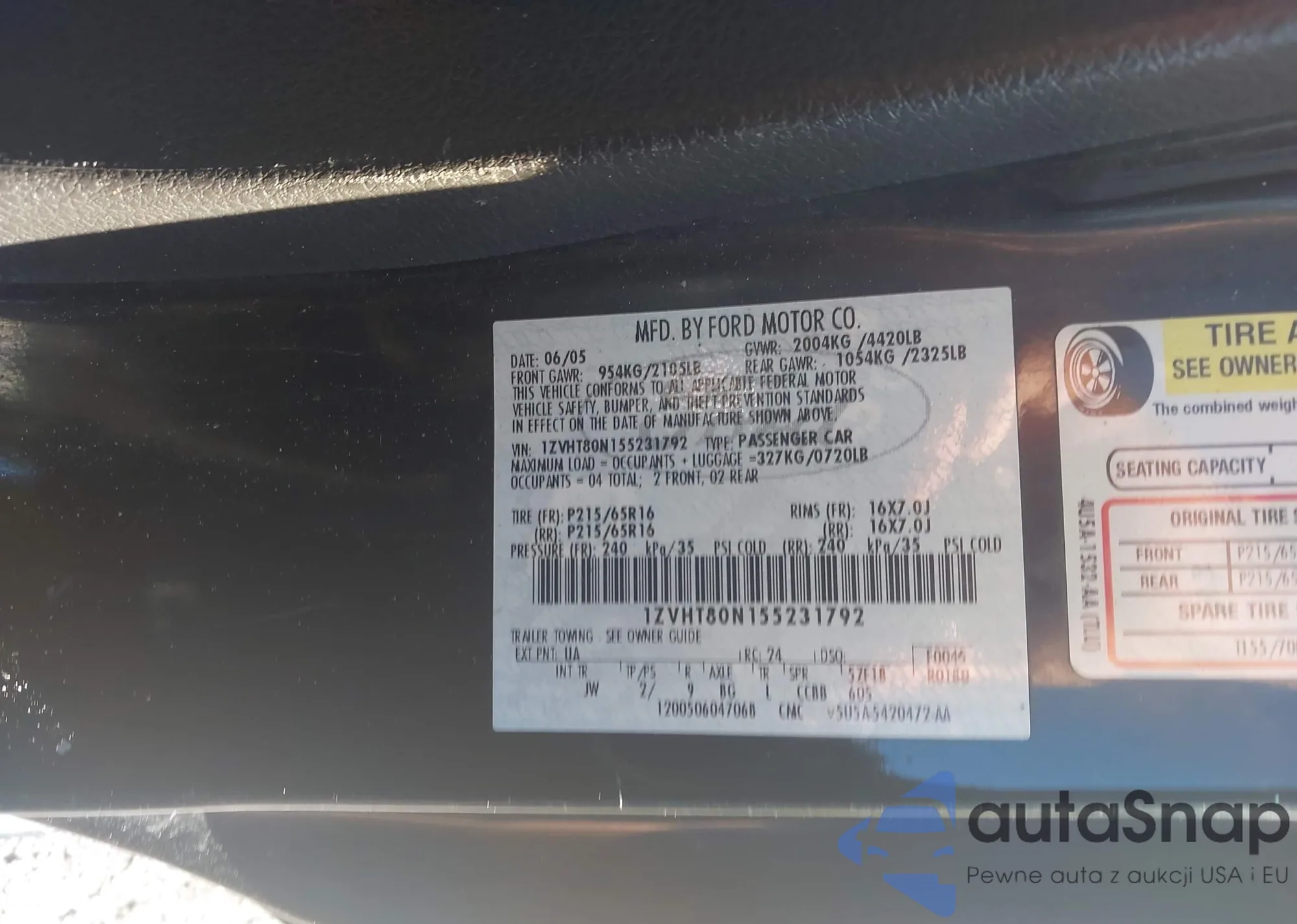 The car Ford Mustang 2005 (VIN 1ZVHT80N155231792) has not been auctioned before. The documents are clean, and the mileage matches or is below the market average. Sold by an insurance company – we recommend purchase. Delivery to the port will take approx. 6–8 weeks.