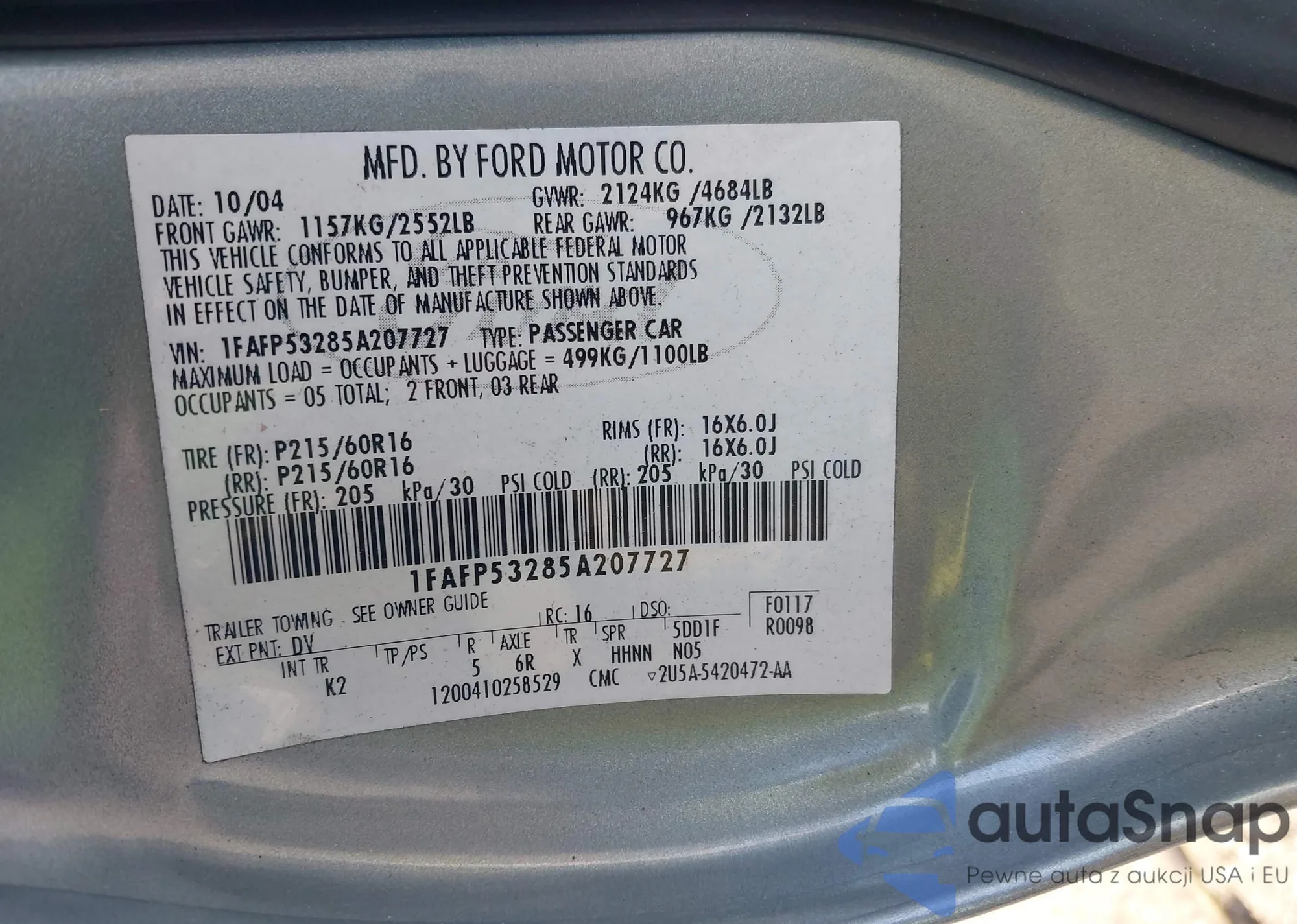 VIN: 1FAFP53285A207727