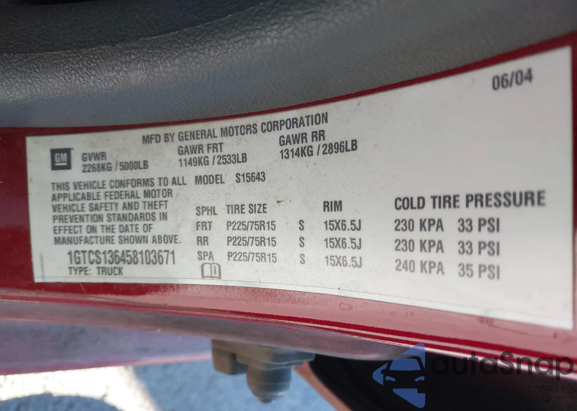 VIN: 1GTCS136458103671