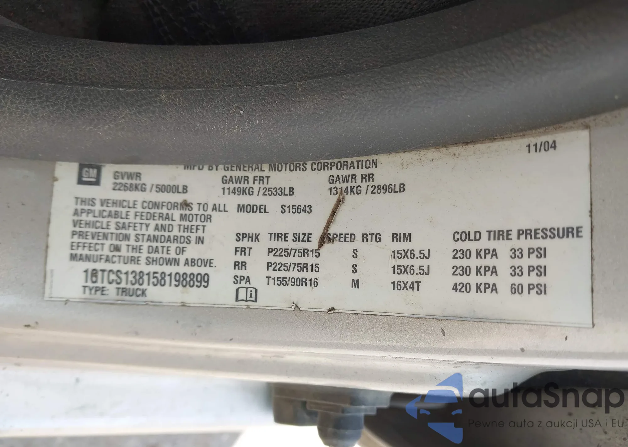 VIN: 1GTCS138158198899