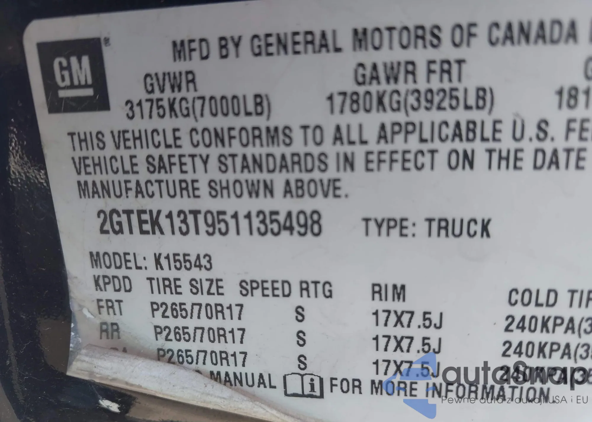 VIN: 2GTEK13T951135498